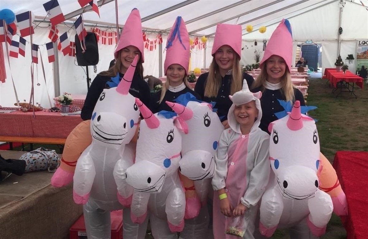 Da vi kom derop, pyntede vi boksene med det tema vi havde valgt, som var Unicorns. Vi havde købt enhjørningsdragter, som vi var klædt ud i og gik sammen rundt på pladsen og delte regnbuefarvet slik ud til de andre ryttere.