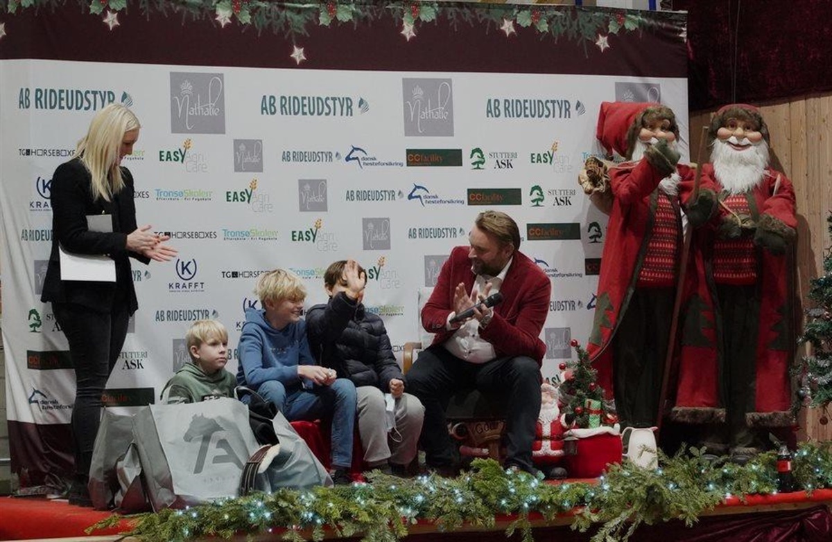 Derfor var de to ponyryttere, Zac og Maxie, blevet inviteret af Danish Derby til Christmas Show, og lige inden starten af den store Grand Prix lørdag aften blev de to drenge inviteret på scenen.