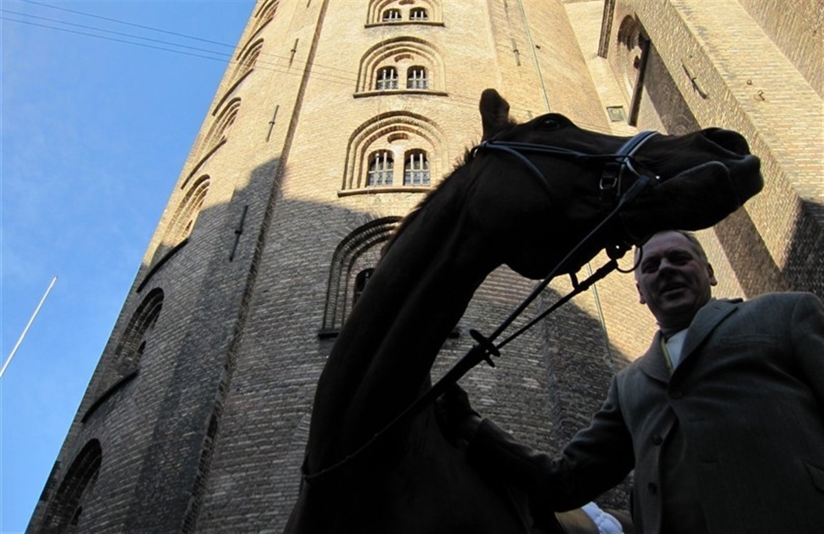 Simon Thorkelin, indehaver af Quiet Stable, har skrevet Danmarkshistorie ved at indtage Rundetårn i centrum af København - på hesteryg! - Det var en sjov tur og ikke mindst at få lov til at skrive Danmarkshistorie. I dag er det nøjagtigt 293 år, 29 dage og 4 timer siden, at den russiske zar Peter den Store red turen. Så det var jo på tide, at en dansker tog udfordringen op, udtaler Thorkelin og tilføjer: - Det kræver gode ben at nå toppen! Gennem tiden har man kunne opleve flere sære måder at bestige tårnet på: Der er mange forklaringer på den underlige spiralgang der fører fra bunden af tårnet og næsten til toppen. En forklaring er at Christian IV ønskede at kunne køre op i vogn, men om han nogensinde var oppe i toppen vides ikke. Siden er tårnet blevet indtaget på forskellig vis: I 1716 besøgte zar Peter den Store København. Han var meget interesseret i astronomi og skulle selvfølgelig besøge Observatoriet på Rundetaarn. Det har ikke været passende for en zar at gå op til toppen så han red til hest, hans kone var med og hun lod sig køre op. I 1902 kom en tysk turist til København med sin, for den tid kraftige bil, en Benz-Gaggenau, han beklagede sig over at vi herhjemme ikke havde bjerge så hans bil kunne vise hvad den duede til. Grosserer Lippert, der netop havde overtaget varelageret fra den likviderede fynske motorfabrik "Citus", kendt for sine trehjulede køretøjer, tog udfordringen op og fik arrangeret en kørsel i Rundetaarn, så dette nye hesteløse køretøj kunne vise hvad det duede til. Journalisten Eric Boesgaard kørte i 1920'erne til tops i tårnet i en Fordvogn. Læs flere sjove historier om Rundetårn i det vedhæftede dokument.
