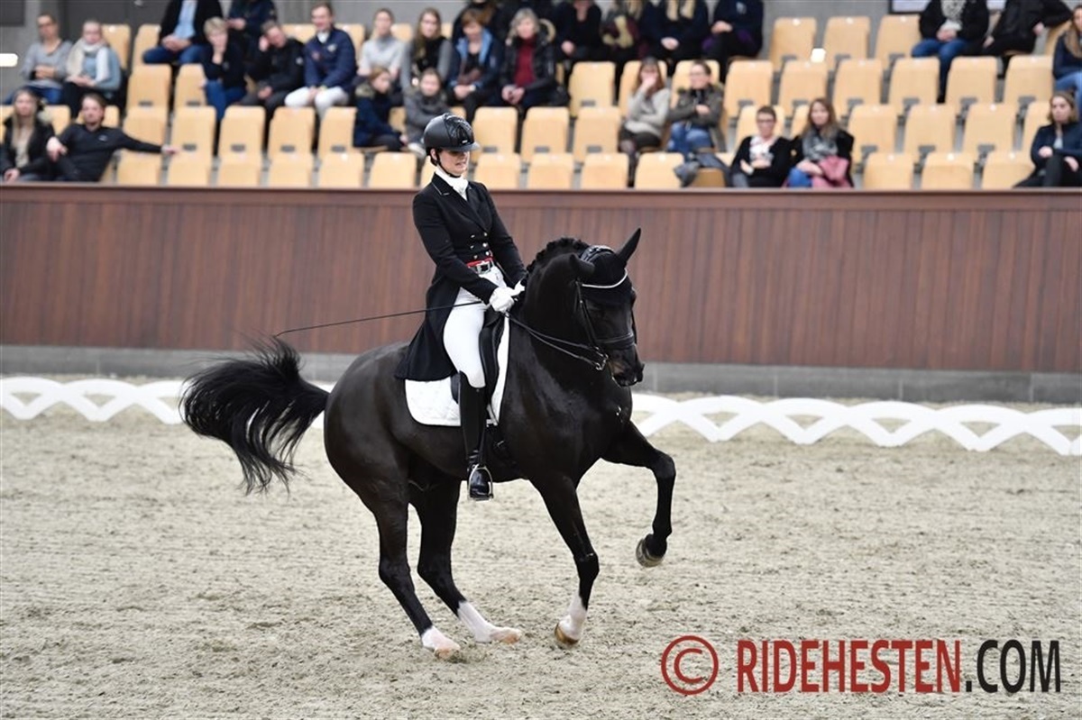 Carina Cassøe Krüth overtog May-Day Graftebjerg e. Dream of Heidelberg i vinters efter berider Kasper Olsen har gjort et særdeles godt uddannelsesarbejde med den positive hoppe. Parret havde deres internationale debut ved FEI World Cup-stævnet i Herning, og på Blue Hors red de sig ind på fjerdepladsen med 68,233%