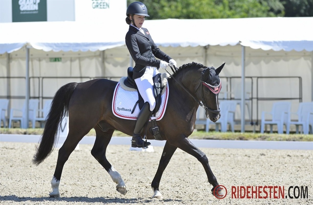 I dag sejrede Laura Gotteberg Jakobsen med 71,126% på sin skønne lille Prince, foran holdkammeraten Mathilde Fovsholm med 70,450%. Det var nogle solide danske præstationer, der slog holdets stærke position fra forleden fast. Johanne Kofod Jensen opnåede i dag 70,225, og Fie Dybro Jensen red sig i dag op på 68,559%.
