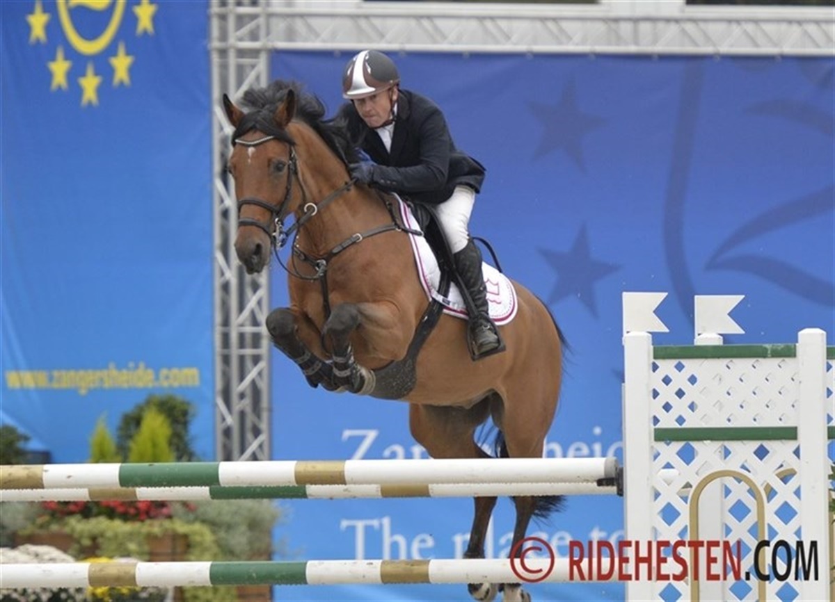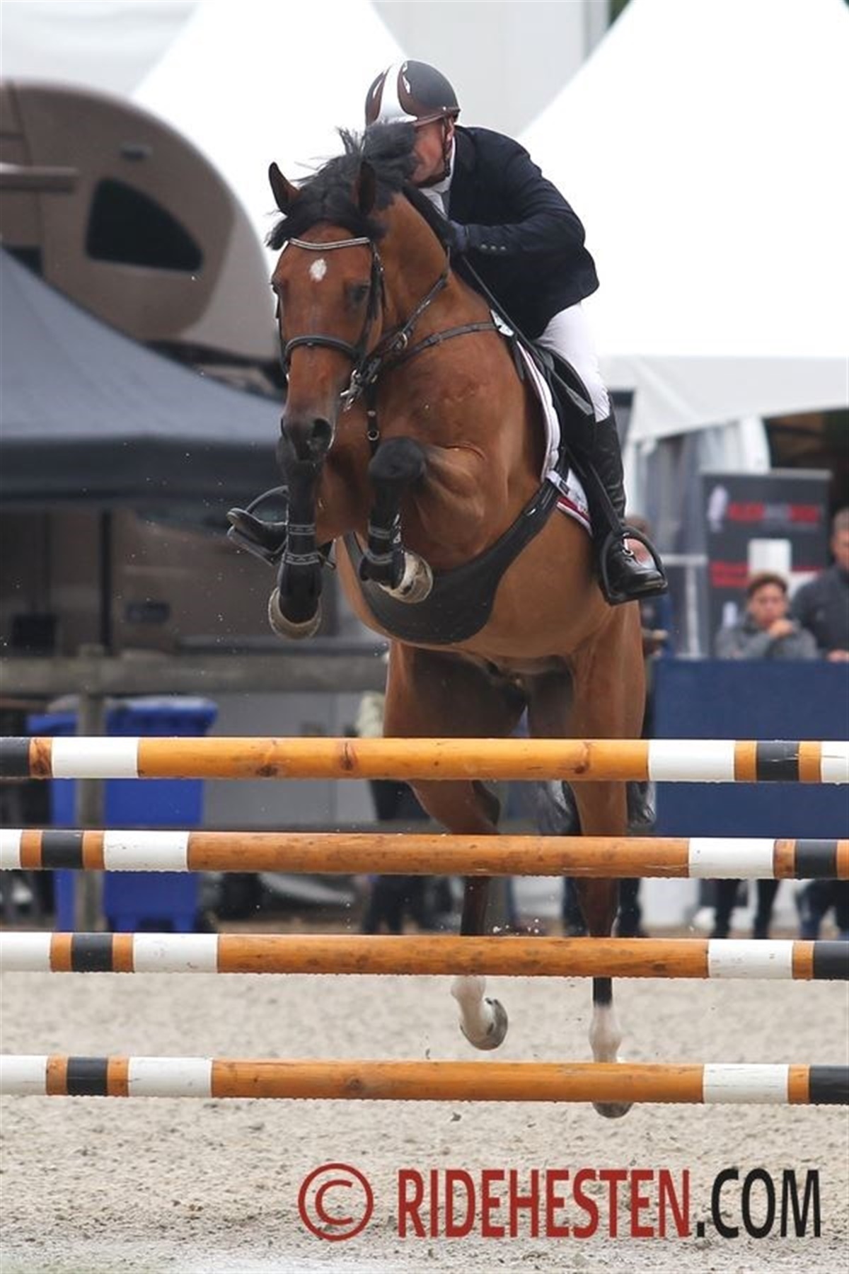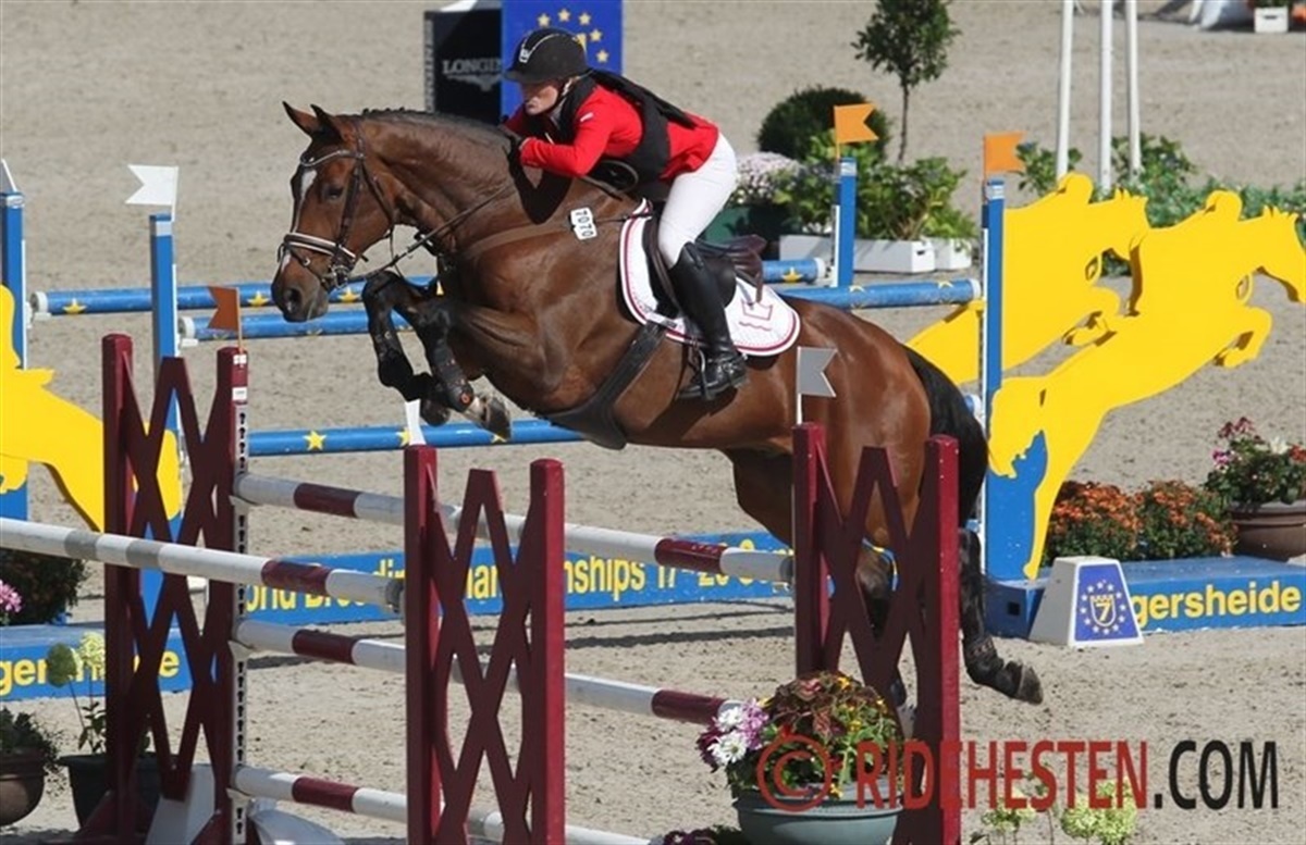 5-årige Hattrick e. Heartbeat og sølvmedaljehoppen Diana e. Diamant de Semilly/Quidam de Revel. Opdrættet af Carsten Carstensen og redet af Robin Grauff Jacobsen.