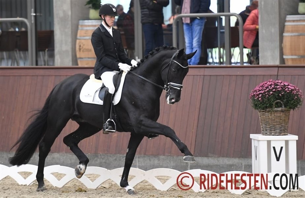 I et stort felt af unge - og for manges vedkommende meget ”grønne” – heste tog den hollandske hingst Kardieno e. Dante Weltino/ Parcival teten. Den storrammede hingst viste sig meget arbejdvillig og blev redet af berider Thomas Sigtenbjerggaard til sejr med imponerende karakter som 9,5 for ridelighed og 9,4 for både trav og galop og samlet 9,,2.