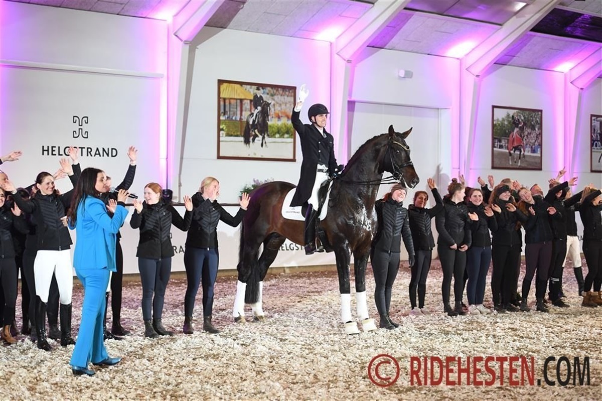 En meget flot afslutning på en fremragende show blev leveret af først Mette Sejbjerg Jensen på en smukke 5-årige Iron e. Asgard’s Ibiza/ Hohenstein og til sidst herren i huset, Andreas Helgstrand på den imponerende Jovian e. Apache/ Tango, som netop har debuteret i Grand Prix i en alder af blot 8 år. Med power, gummi, elastik, afskub, bæring, rummelighed og skulderfrihed til overmål fik Jovian tiden til at stå stille.
