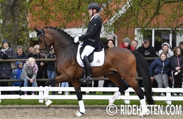 I tilgift til den store selektion af de yngre hingste fik tilskuerne i dag også fornøjelsen af at den af Helgstrands hingste, der har stået længst tid på stationen og nu har flere kårede sønner hos Helgstrand, nemlig Franklin e. Ampère/ Ferro, der blev flot fremvist af sin faste rytter Betina Jæger Jensen. Endnu en tophingst med en kåret søn i Helgstrands hingstekollektion er Hesselhøj Donkey Boy e. ERA Dancing Hit/ Milan, som med Anne Mette Strandby Hansen i sadlen har debuteret i S og står foran en lovende fremtid med sin rytter.