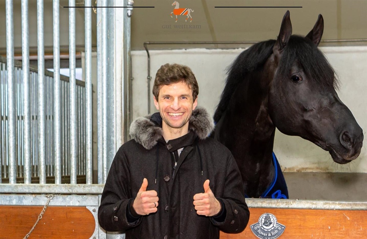 Den kendte hingst Imposantos e. Wynton/Krack C gør DV-hingsten D'Avie e. Don Juan de Hus/Londonderry selskab i stalden hos den tyske dressurrytter Lisa Müller og hendes mand, Bayern-München fodboldspilleren Thomas Müller.