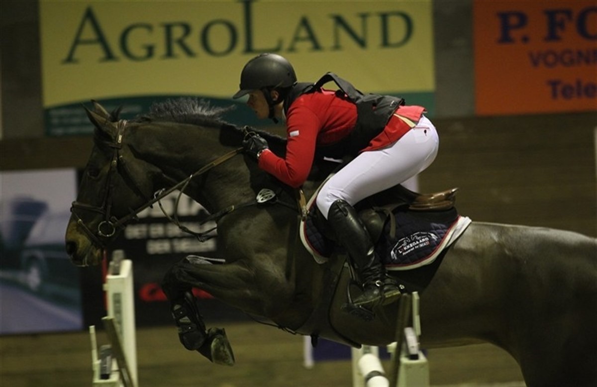 Der var fyldt på tilskuerpladserne og en super stemning i hallen i dag, hvor den 1. afdeling af Indendørs DM blev afviklet i Fredericia. Klassen blev vundet af Rikke Haastrup Pedersen på Coqueluche, med 0 fejl og i en fantomtid, der hed 58,58 sek. På 2. pladsen kom Tina Lund og Zamiro, der også gennemførte banen med 0 fejl – her hed tiden 60,39. Carsten Ganderup og Little Rock ligger på en foreløbig 3. plads og på en foreløbig 4. plads ligger Torben Frandsen på den skimlede It’s Catweazle. Den forsvarende indendørsmester, Kristian Skovrider på Sharp, red i dag med 4 fejl. Sidste og afgørende del af Indendørs DM gå i morgen, søndag, kl. 15.40. Se øvrige resultater fra de første dage via linket til højre.