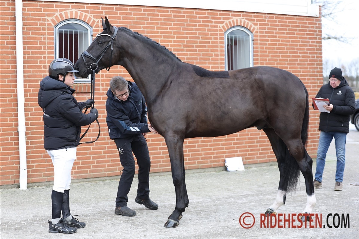 De to hingste blev indsynet af træningsleder, Torben Frandsen, teknisk ansvarlig for afprøvningen, Bjarne Nielsen som repræsentant for Avlsledelsen og dyrlæge, Jacob Greve.