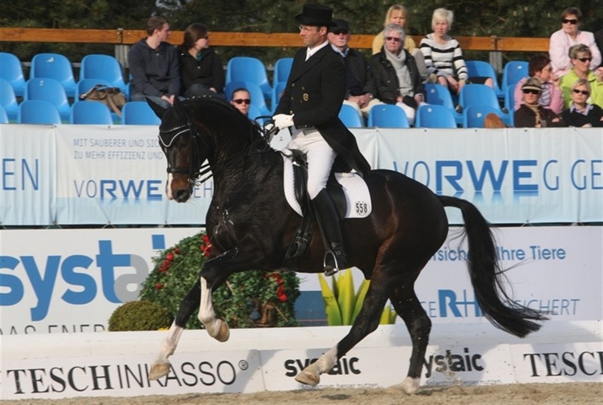 Selv om der naturligvis var et stort fokus på én bestemt ekvipage i det store startfeldt i Intermediaire II i Isternhagen igår, nemlig det spritnye par Nadine Capellmann/Girasol, så var der ingen tvivl om, at Isabell Werth skulle vinde med sin meget lovende 9-årige El Santo e. Ehrentusch. Ekvipagen opnåede 77,21% og det ser ud til, at Isabell har en ny tophest på vej. Faktisk er Isabell Werth i disse dage til femstjernet dressurstævnet i Cannes, hvor hun netop torsdag vandt Exquis World Dressage Masters Grand Prix med Warum Nicht og skal starte Grand Prix Kür i dag. Selv om hun har medbragt sin mand og deres spæde søn Frederik, så valgte Isabell at flyve til Tyskland med familien igår for at starte i Isernhagen, som er hendes sponsor Madeleine Winter-Schultzes hjemby. Den store Intermediaires II klasses fokuspunkt i Isernhagen var som sagt den fantastiske hoppe Girasol e. Gribaldi, som Nadine Capellmann erhvervede sig i pinsen. Efter kun et par ugers samarbejde ser de to ud til at være fundet meget fint sammen. Efter flere andre typer heste under Nadines sadel de seneste år var det en stor fornøjelse at se hende på så energisk og selvgående en hest. Efter en dårlig indridningsparade fik Nadine bevist sin oprindelig lette ridestil og der er ingen tvivl om, at hun med den smukke og velgående hoppe vil kunne komme tilbage på det tyske landshold. Det er blot et spørgsmål om tid. I denne debutstart opnåede parret en andenplads med flotte 73,32%. Isernhagen byder søndag formiddag på finalekvalifikation til Medien Cup Ungheste Grand Prix med de bedste ekvipager fra denne Intermediaire II.