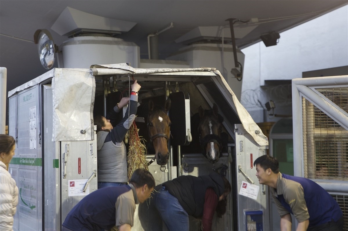 I søndags blev 64 springheste lastet ombord på fly fra Liége, Frankrig, for at blive fragtet sikkert frem til deltagelse ved Longines Masters i Hong-Kong. De landede alle i Kina i går morges, og de er nu klar til at forberede deres stævnedeltagelse den 19. - 21. februar i forbindelse med AsiaWorld-Expo.