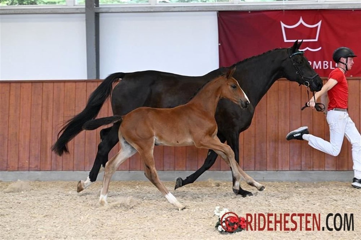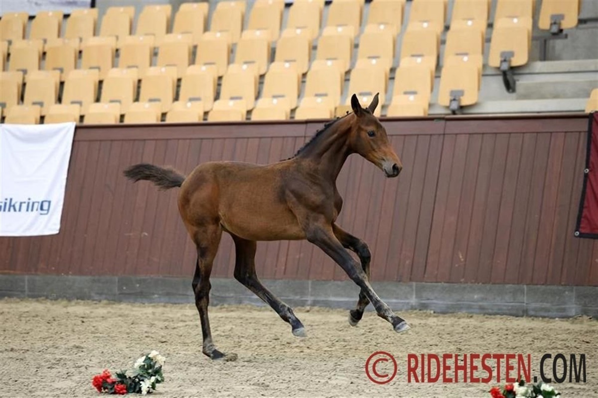 Dette dejlige hoppeføl blev udnævnt som vinder ved følskuet i region 1. Det gjorde hun blandt andet på baggrund af sin særdeles velfungerende, velbalancerede og rummelige galop, samt for hendes velfungerende overlinje og gode eksteriør. Dermed er hun endnu et føl i rækken fra Elitehoppen Chocolat de Merignat, der er blevet udtaget til Dansk Varmblods Eliteskue eller Dansk Varmblods Elitefølauktion.