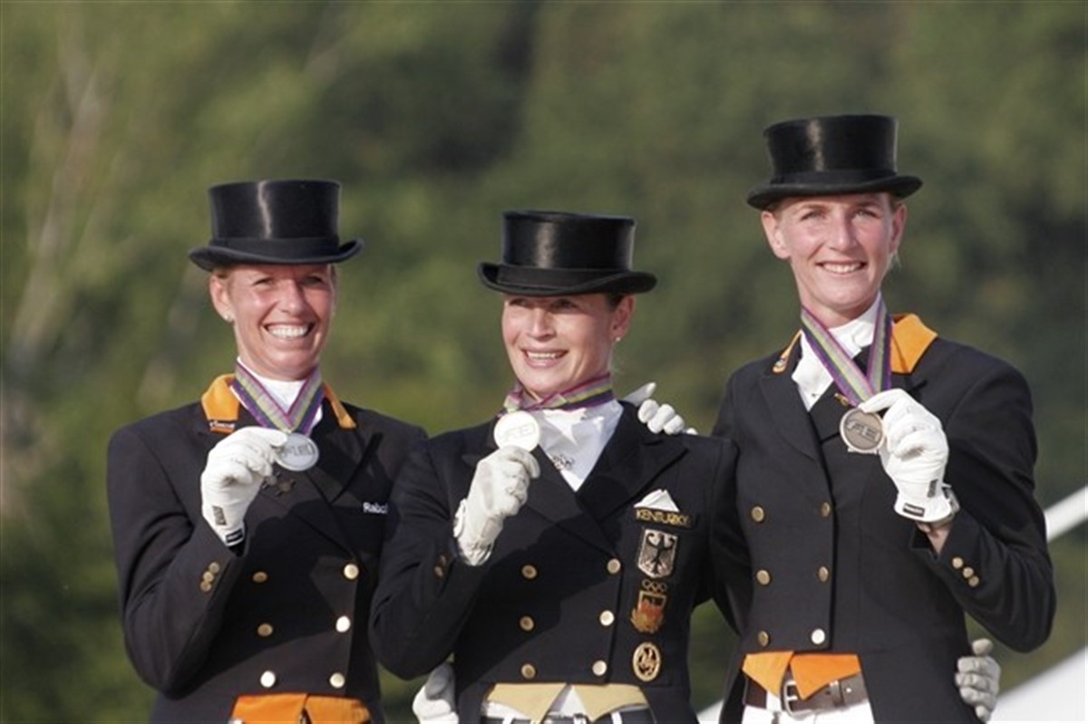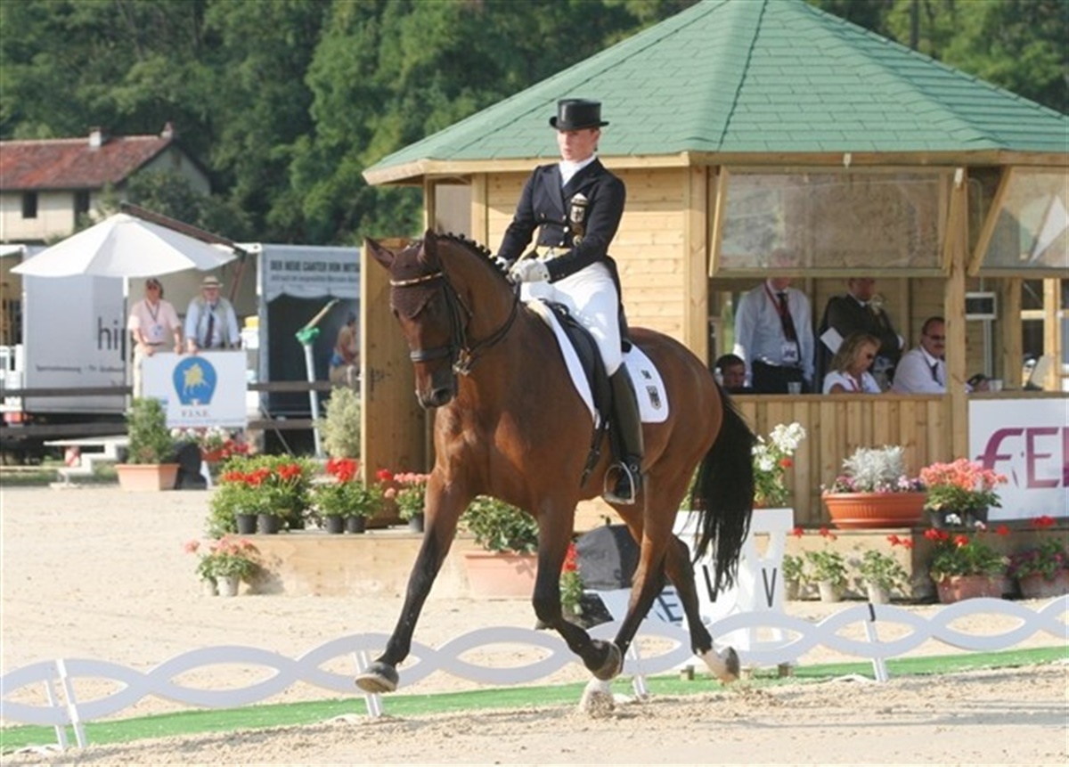 Så står det foreløbigt 1:1 mellem Tyskland og Holland. Hollænderne tog holdguldet i går, og Isabell Wehrt fra Tyskland stod øverst på medaljepodiet da det ædle metal skulle fordeles i det individuelle europamesterskab i Grand Prix Special i dag. På sin højre side havde hun Anky van Grunsven (sølv) og på sin venstre ligeledes hollandske Imke Schellekens-Bartels (bronze). Men det kunne lige så godt have været anderledes mixet- det var kun små marginaler der skilte disse tre piger og deres meget flotte præstationer. Det var Imke der leverede det mest graciøse og fejlfri ridt, medens Anky stod for det mest samlede og mest kontrollerede med et par små spændinger, medens Isabell Wehrt leverede et flot travprogram men havde en fejl i toér changemneterne og har ret moderater piaffer. Både Andreas Helgstrand og Prinsesse Nathalie kvalifiserede sig til morgendagens Kür med en henholdsvis 13 og 15 plads. Det er Nathalies første start i en finale ved et officielt mesterskab. Selv om Andreas og Gredstedgaards Casmir igen leverede en rigtigt flot præstation så var det som om Casmir fandt Specialen lidt sværere og resultat blev lidt færre point end i Grand Prixen, 69,80% Efter al sandsynlighed kommer medaljekampen i morgen i Küren igen til at stå mellem dagens tre medaljetagere, med den regerende verdensmester i Kür, Anky van Grunsven som favorit og med Imka S. Bartel som min personlige out-sider! Kürklassen starter kl. 11 i morgen formiddag med Prinsesse Nathalie som første starter medens Andreas Helgstarnd rider som nr. 5