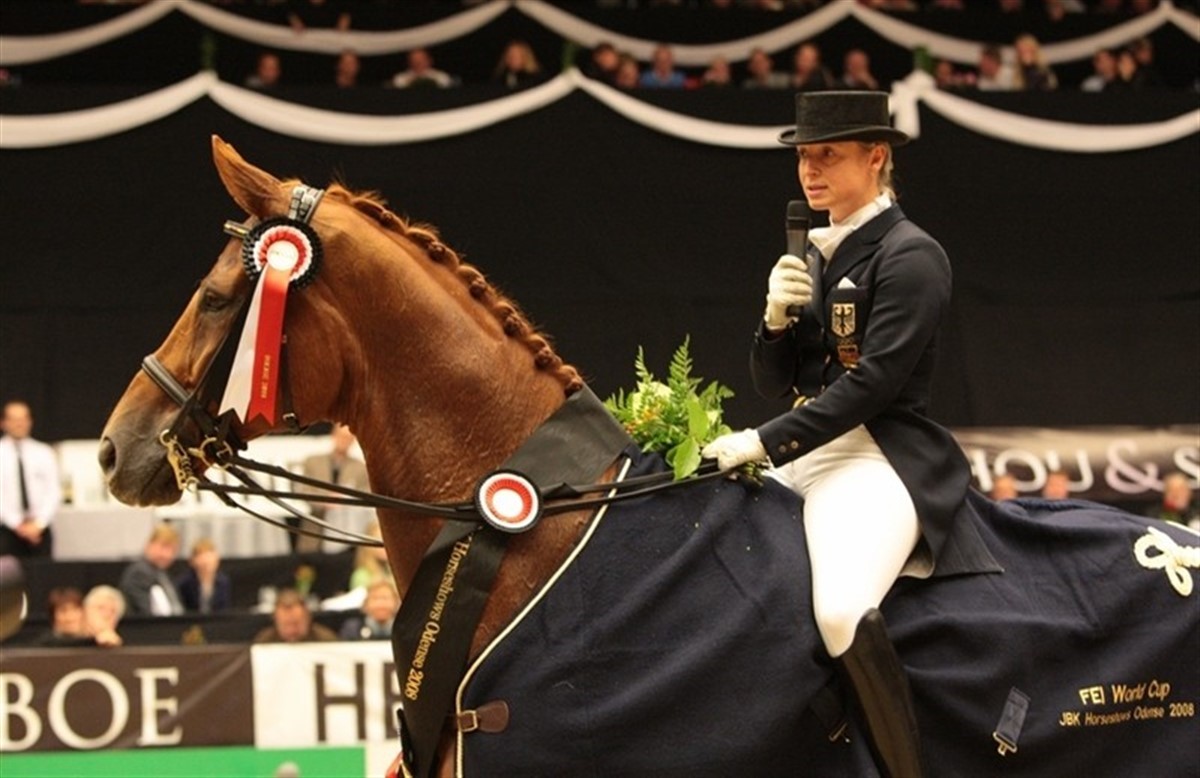 Isabell Werth kunne igår mærke konkurrenternes pusten i nakken, da hun med Warum Nicht vand Grand Prix ved Exquis World Dressage Masters i Cannes med sine landsmænd Anja Plönzke og Mathias A. Rath lige i hælene. Isabell var lidt skuffet over Warum Nicht, der for nyligt har scoret over 76% i München, men den 14-årige hannoveranervallak e. Weltmeyer tabte koncentrationen på grund af nogle blomsterkummer, som ikke havde været ved banen under opmærkning. Dem sørger Isabell nu for, at arrangørerne får stillet op til træningen idag, så problemet kan løses til lørdag. I øvrigt fortæller Isabell Werth, at hun er helt vild med stævnet og stedet, og tager det samtidig som en ferie. 1. Warum Nicht Isabell WERTH GER 71.489 2. Le Mont D'Or Anja PLÖNZKE GER 71.447 3. Triviant UNICEF Mathias ALEXANDER GER 70.851 4. Appolo Van Het Vijverhof Jeroen DEVROE BEL 69.915 5. Eremo del Castegno Valentina TRUPPA ITA 69.234 6. Withney Van'T Genthof Stefan VAN INGELGEM BEL 68.298 Exquis World Dressage Masters turnering 2010: Palm Beach, Florida: 4.-6. februar München, Tyskland: 13.-15. maj Cannes, Frankrig: 10.-13. juni Falsterbo, Sverige: 8.-11. juli Hickstead, England: 29. juli - 1. august