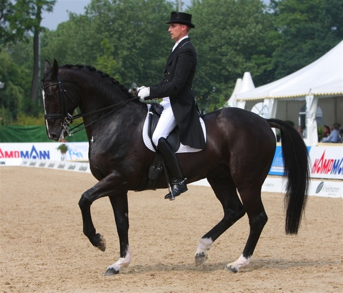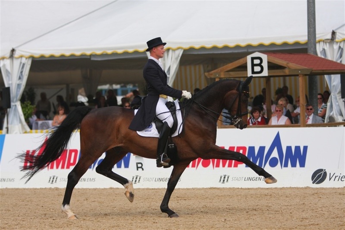 Danske Andreas Helgstrand red den 9-årige vallak Gredstedsgårds Casmir ind på en 6. sjette i det 21 mand store Grand Prix felt. Ekvipagen opnåede 70,875%. Andreas var tilfreds med ridtet og fortalte, at den unge Casmir har meget mere i sig. "På opvarmningen var han helt super, men det er stadig lidt svært, når vi skal have det hele kædet sammen. Han blev noget frisk, da vi kom ind på banen". "Det lykkedes at præstere et nogenlunde fejlfrit program og jeg er godt tilfreds. Casmir mangler stadig lidt styrke og erfaring, og jeg minder stadig mig selv om, at han kun har gået Grand Prix i et år." På andenpladsen kom dansk varmblodshesten Mistral Højris under engelsk flag med Laura Bechtolsheimer. Ekvipagen opnåede 73,208% og gav udtryk af at have meget mere i sig. Laura red ikke hesten fuldt igennem og fortalte, at hun satsede på at give den noget varme hest en god oplevelse idag for, at den skal befinde sig mere sikkert på banen imorgen. Det gav bonus i form at et ridt uden egentlige fejl, men også et ridt, hvor man kunne ønske at se mere af hestens store potentiale. Tredjepladsen Matthias A. Rath med Sterntaler var klassens store overraskelse. Alene ekvipagens belønning med 71,708% kom som en stor overraskelse for mange. Den noget muskelfattige hest har tre særdeles gode gangarter, men der indløb fejl i både piaffe og traverser, og rytteren formår endnu ikke at ride hesten korrekt frem til hånden.