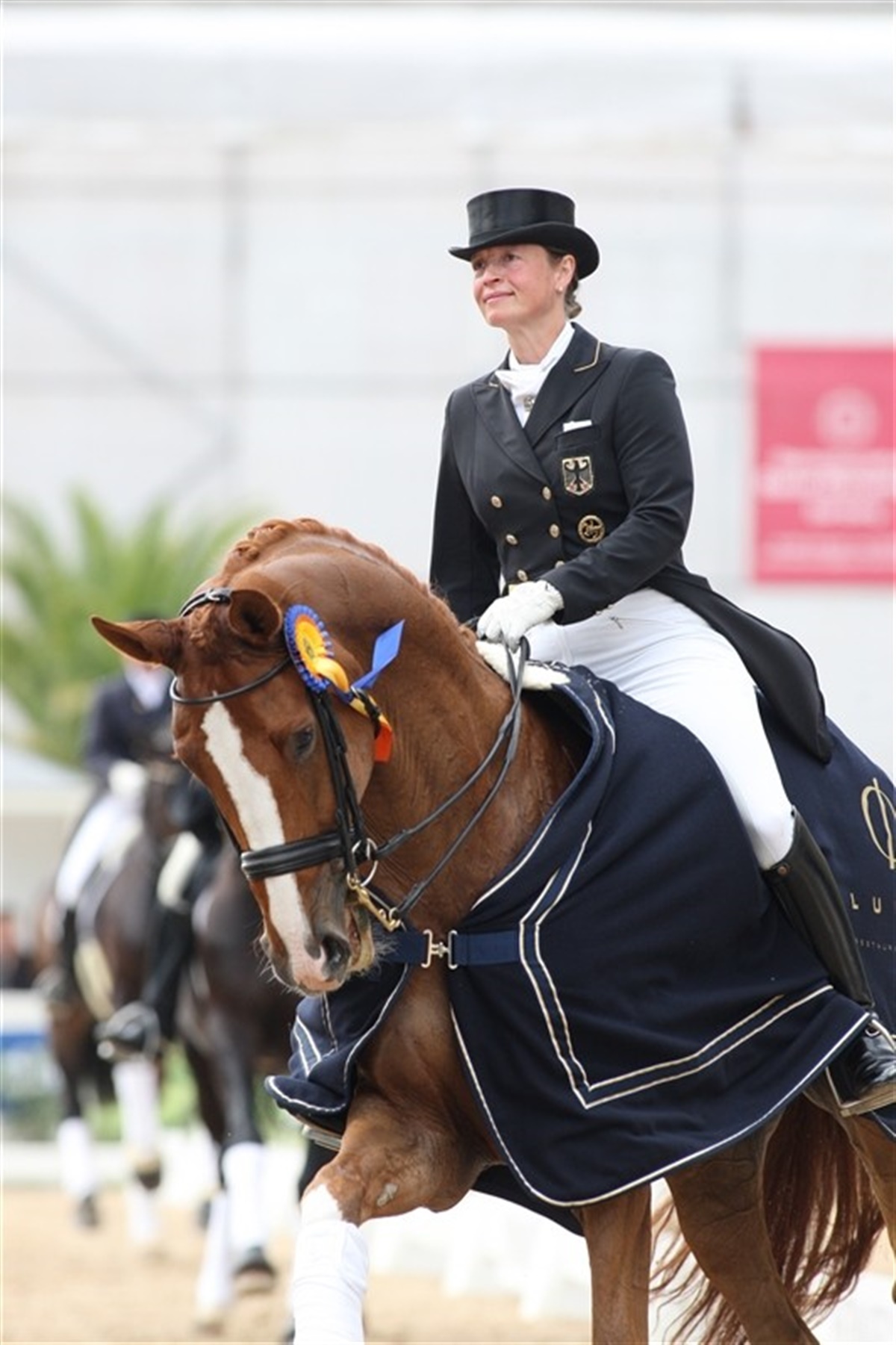 I Grand Prix klassen søndag havde Isabell Werth sit at se til, for Warum Nicht så spøgelser overalt på banen. I dag kom han til start med langt mere selvtillid, og det smittede af på præstationen, der blev vurderet til 76,7% af dommerkollegiet, og det kunne gårsdagens vinder Matthias Alexander Rath ikke matche. Han var ellers flere gange meget tæt på Isabell i sit program på Sterntaler-Unicef, men fejl i begge changementsserie for hvert galopspring kostede dyrt i forhold til verdensranglistens nummer et, så den 24-årige tysker måtte i dag stille sig tilfreds med andenpladsen med 74,4% foran endnu en landsmand, Monica Theodorescu/Whisper med 74%