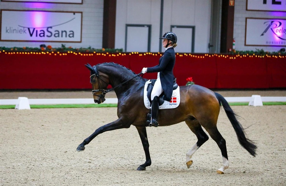 Med 21 ekvipager til start i klassen sikrede Rikke Maria Schoubye Johansen sig en flot andenplads i sadlen på den 12-årige DV-vallak Baunehøjens Carpaccio e. Charmeur/ White Talisman (opdr. Pia Gobert) efter et rigtig flot ridt til 69,798%, hvor særligt trav- og galopprogrammet lykkedes rigtig godt for parret. Rikke er ikke helt ny på stævnebanerne med Carpaccio, for i sommers vandt parret nemlig Agria DRF-mesterskabet for juniorryttere, og i går fulgte de altså trop med en flot international placering.
