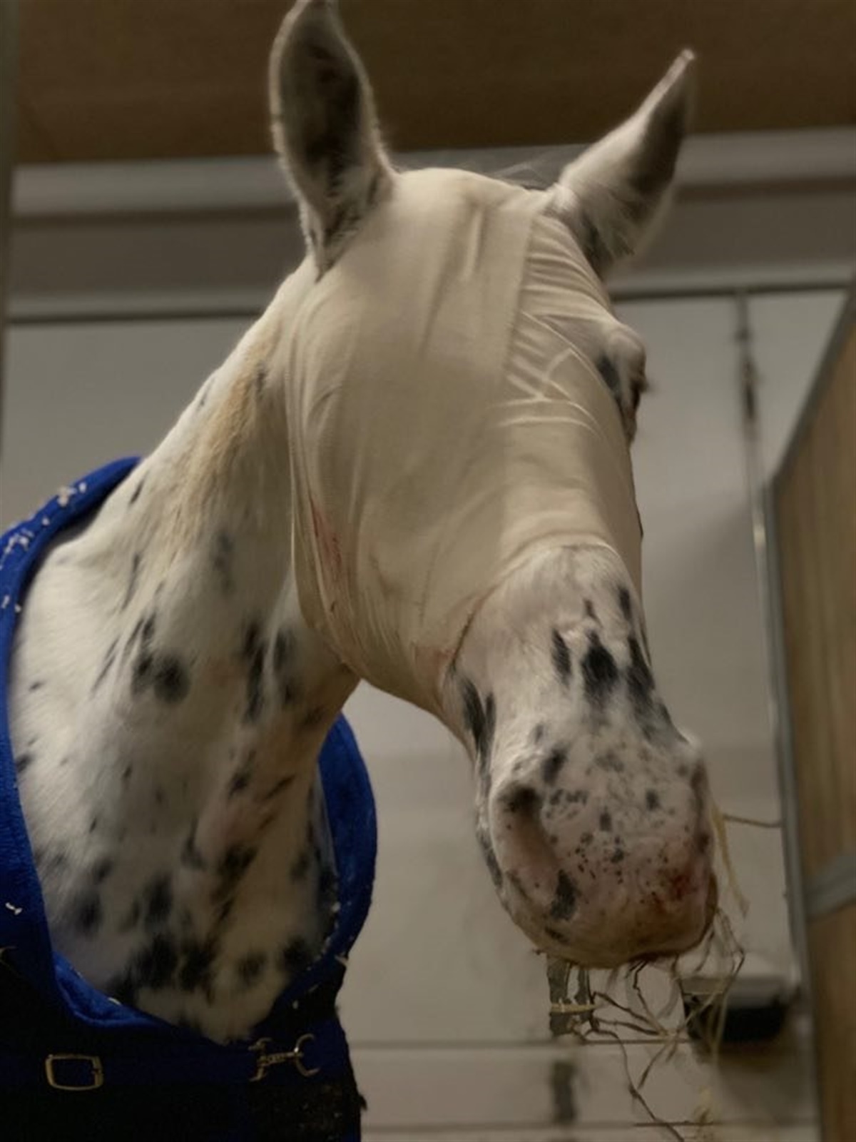 Mandag skulle jeg ride min første klasse (en LB2**). Vi havde sadlet op og alt var egentlig klart, men så kom der et opkald hjemmefra om, at min anden pony, Happy, havde fået en skade på sit øje og var blevet kørt på dyrehospital hvor beskeden var at den skulle have fjernet sit øje. Jeg blev meget ked af det, mest fordi jeg ikke kunne være der for ham.