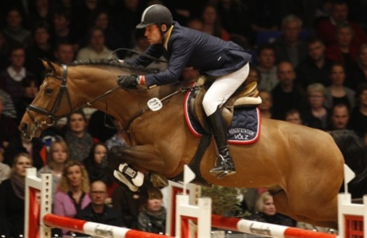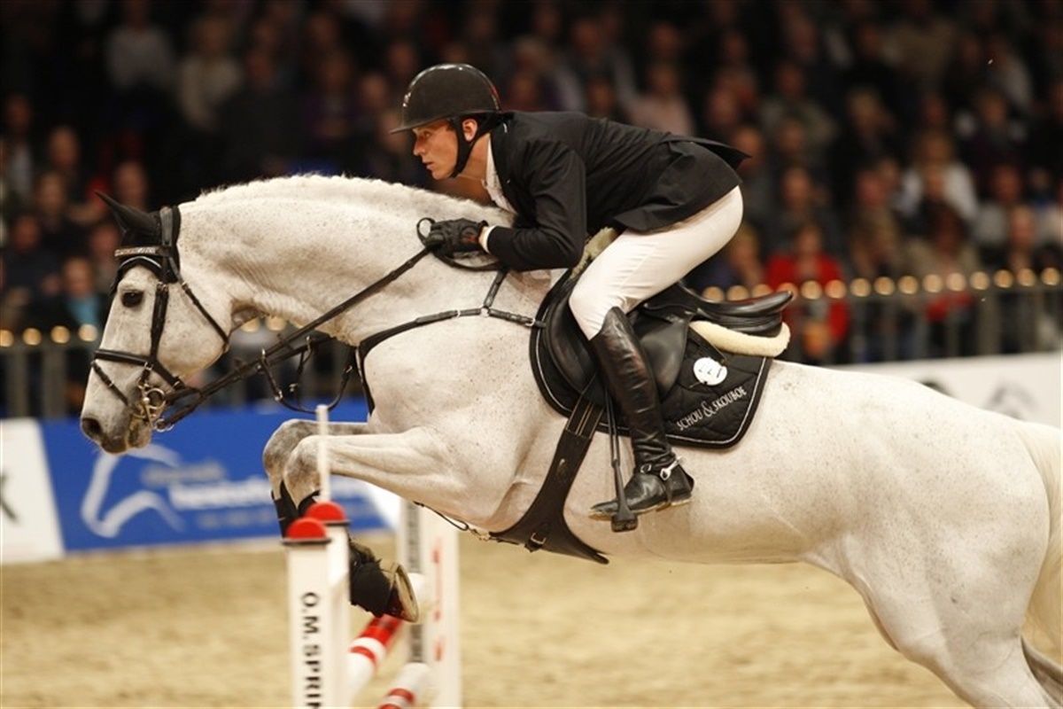 Der var en super stemning her til aften under Dansk Varmblods gallashow og springrytterne bidrog til oplevelsen i en MA-springning, hvor halvdelen af ekvipagerne mødtes i omspringningen - og der blev redet rigtig stærkt! Andreas Schou lagde ud med Uno's Safier med en lynhurtig 0-runde i tiden 35,31 sekund. Det satte de øvrige ryttere under pres, men nordtyske Björn Nagel og Carinjo ville det anderledes. Den erfarne springrytter satsede 100% til den sidste forhindring, og han standsende tidtagningen på 33,33 sekunder. Da Andreas Schou red på banen med skimlede Chicago jublede publikum og heppede på Andreas. Han kvitterede ved at lave lynhurtige vendinger, og da han red mod den sidste forhindring var han foran - men han var nødt til at tage tilbage til sidst, for lige at få det til at passe, men det gjorde det alligevel ikke helt, og Chicago slog bommen ud af holderen. - Jeg havde ham lige til det sidste spring, udbrød Andreas med ærgelse i stemmen, da han kom ud af banen. Han måtte så istedet glæde sig over, at han kunne holde andenpladsen med Uno's Safier. Björn Nagel var vildt tilfreds med sin sejr: - Det her er et super arrangement, vi glæder os alle sammen, hvert eneste år til at komme her, fortalte Nagel efter sejren. Det er i år 4. gang han deltager i DV's hingstekåring. - Thomas Voss har 15 S-sejre på Carinjo der nu er 9 år, men det er mig som får lov til at ride ham i Herning, sluttede han begejstret.