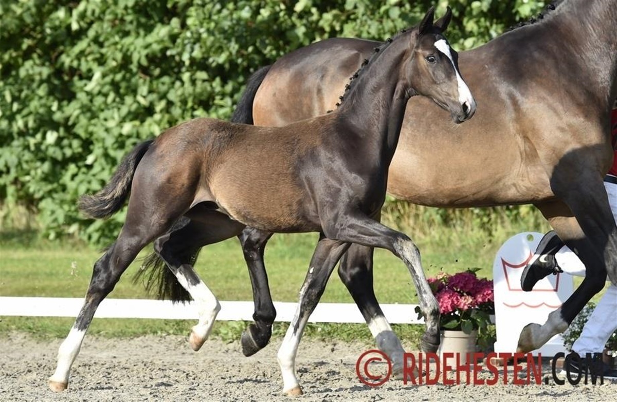 Føllet pryder Dansk Varmblods flotte guldannonce for Elitefølauktionen, og det synes Lennart naturligvis er fedt at se. Han har allerede fået en del henvendelser på føllet, men vælger at holde forventningerne til auktionen på et moderat niveau og holde begge ben på den jyske jord.