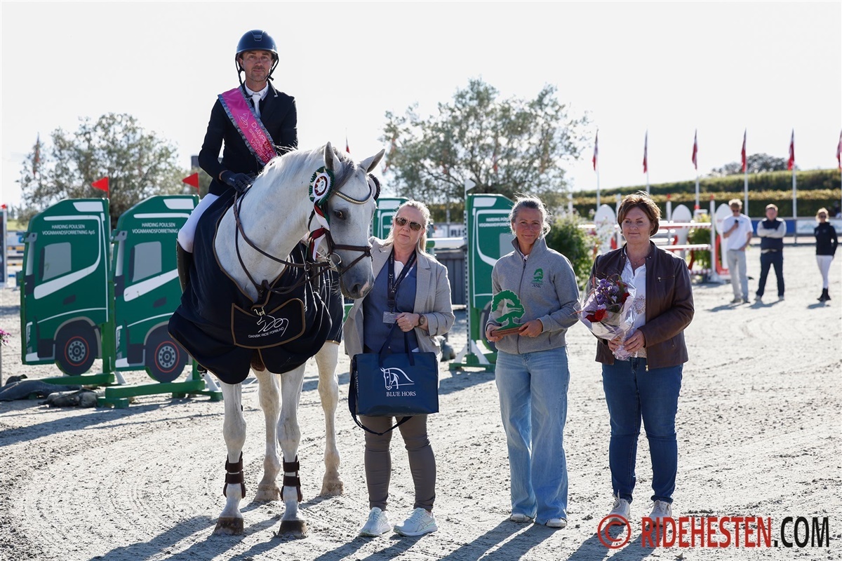 Der gik dog ikke længe, før vi fik klassens anden nulrunde, for Christian Jansen sikrede nemlig omspringningen med DV-hesten Narciso Blue e. Zirocco Blue/ Numero Uno (opdr. C. de Dreu). Parret var fejlfrie i første kvalifikation, havde en bom i anden kvalifikation, men i dag sikrede de altså en omspringning i finalen, da de strøg fejlfrit over målstregen.