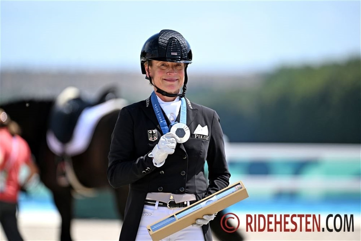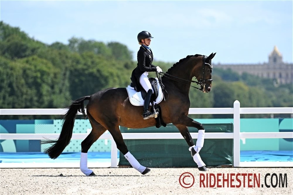Efter dem blev det rigtig spændende, for med to ekvipager tilbage var der lagt op til, at topkampen nu skulle stå. Den forsvarende, olympiske mester Jessica von Bredow-Werndls 17-årige trakehnerhoppe TSF Dalera BB e. Easy Game/ Handryk har heller ikke set ud til at fungere 100% under de to første starter, men i dag var parret virkelig tilbage på toppen, og som de eneste red de lige præcis over 90%. Dermed forsvarer Jessica sin titel fra Tokyo, og det eneste, hun nærmest har til gode at vinde på hoppen, er VM, hvor hun ikke deltog i 2022 pga. barsel. Mon ikke, at Dalera dog er for gammel til at deltage i 2026 – det vil tiden vise.