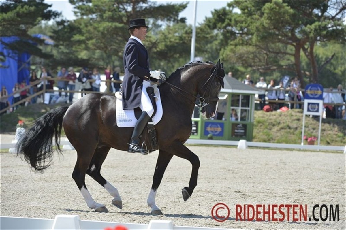 Da Joachim Thomsen travede ind på dressurstadion i Falsterbo på Akeem Foldager, så gik der et sus gennem publikum. Den 10-årige Akinos-søn bevæger sig med et udtryk i gangarterne, og med en sikkerhed i øvelserne, som det kun er få heste på dette niveau forundt. Det var bestemt ikke til at se, at dette var Akeems Grand Prix debut. Joachims professionalisme og store overblik på banen, hjalp den urutinerede hest til at vise hele sit store potentiale. Da de hilste af efter et fejlfrit program skyllede jublen ned over parret, og procenterne tikkede opad på resultattavlen. Resultatet blev 74,87% i deres internationale debut, og O-dommer Wojtek Markowski ved dommer C gav ham 77% Det var rigeligt til at sikre sejren foran Mattias Jansson/Brisbane med 69,74% Yderligere tre danskere havde fået startmulighed i klassen, og Hasse Hoffmann med Tiesto e. Gribaldi blev placeret på femtepladsen med knap 67%