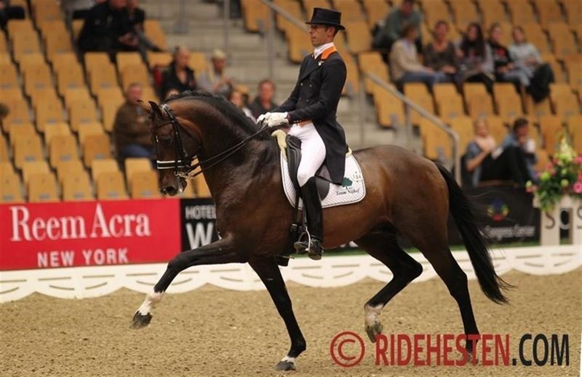 Den 11-årige KWPN-hingst Johnson e. Jazz / Flemmingh har i weekenden debuteret i Grand Prix i Oud-Beijerland i Holland under sin faste rytter, Hans Peter Minderhoud. Det blev til en score på 74,6% og sejr.