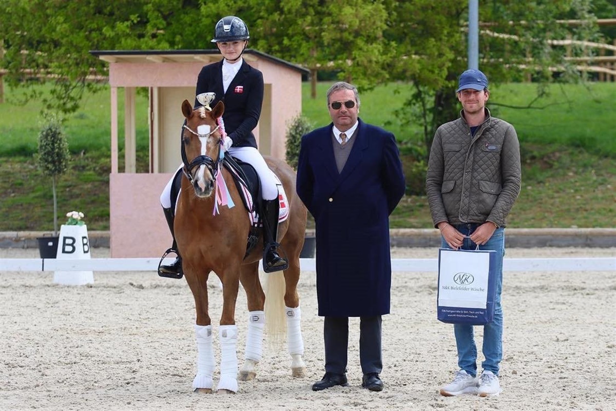 I sadlen på Kastanienhof Crimson Gold e. Kastanienhof Cockney Cracker/ Tetworth Crismson Lake vandt Josephine Gert Nielsen i sidste uge tre klasser ved det internationale stævne i tyske Troisdorf, hvor flere danske ekvipager var til start.