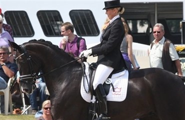 Kl. 14.09: Anne-Mette Strandby Hansen og Eternity e. Escolar/ Sir Donnerhall I har lagt sig i spidsen af konkurrencen med 83,407%. Det blev til meget velfortjente 9,8 for galop og 9,7 for ridelighed.