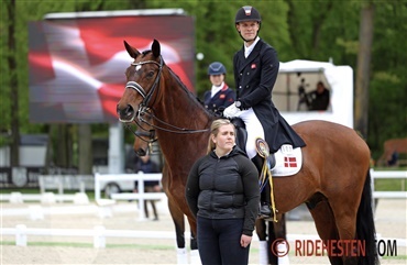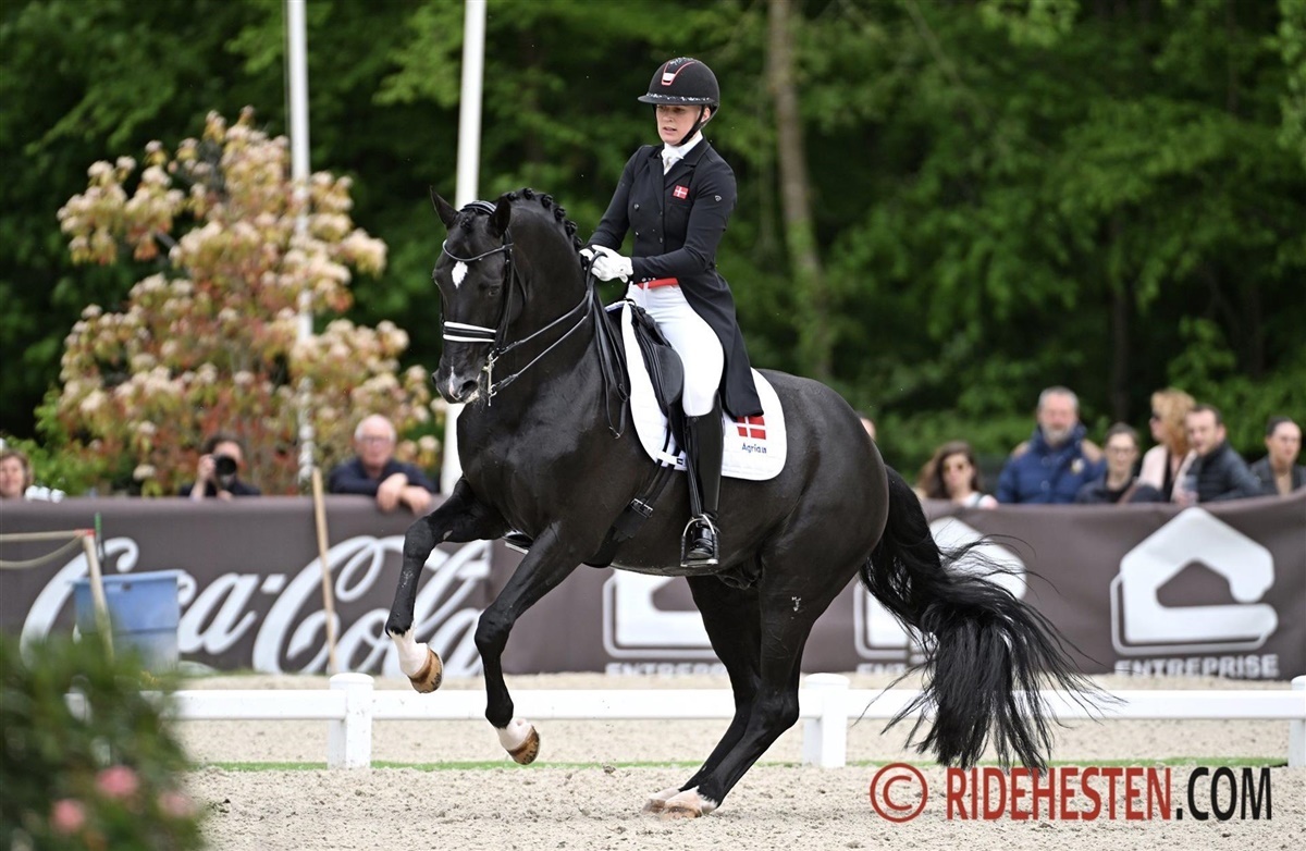 Derefter hvilede alles øjne på danske Nanna Skodborg Merrald og Blue Hors St. Schufro e. St. Moritz Junior/ Blue Hors Don Schufro, som kunne fuldende en fantastisk weekend med endnu en dansk sejr. Langt hen i programmet så det også ud til at være en mulighed, indtil der først indfandt sig lidt fejl, da avlshingsten faldt i trav før to galoppirouetter, og i changementerne misforstod han Nanna lidt og troede, det var tid til en fri galop. Det kostede dyrt, men med en meget høj sværhedsgrad lykkedes det den danske ekvipage at opnå 76,47%, hvilket i sidste ende rakte til en fjerdeplads.