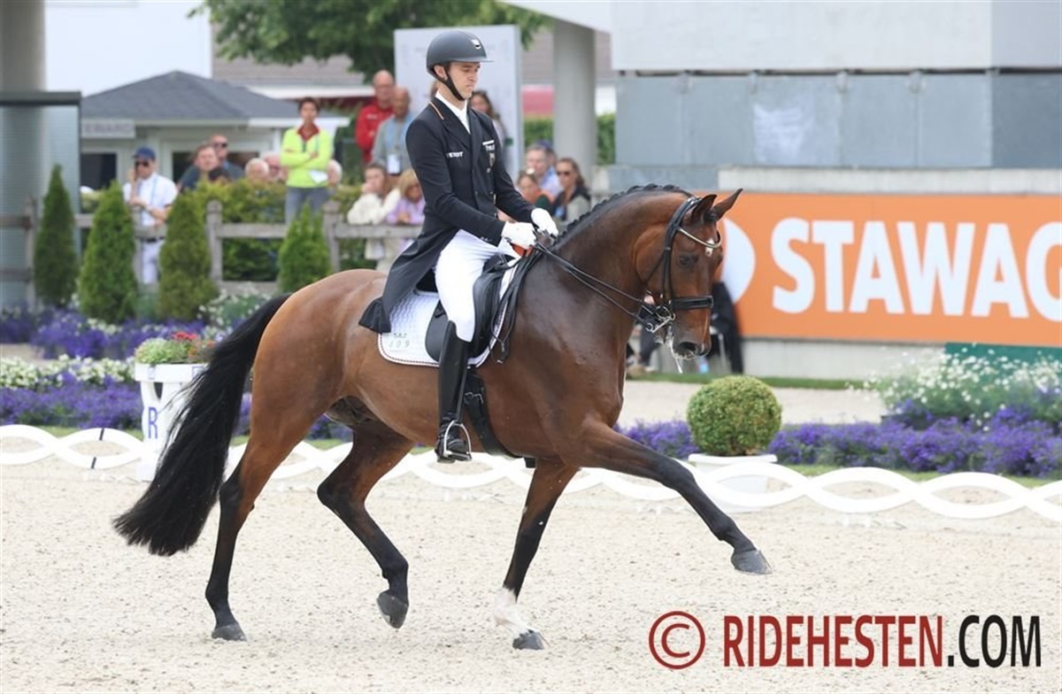 Også tredjepladsen blev besat af en tysk landsholdsrytter på en DV-hest, nemlig Sönke Rothenberger og vallakken Fendi e. Franklin/ Diamond (opdr. Danish Derby Horse Shows ApS), der som både Jovian og Wendy er 10 år gammel og er tidligere ejet af Helgstrand Dressage. Fendi og Sönke har haft imponerende karriere med relativt få starter og mange topplaceringer, men sidste år i juni opnåede de et enkelt dårligt resultat og blev ikke udtaget til det tyske EM-hold, der vandt guld. Med 73,366% lå de i dag lidt under deres ellers meget høje niveau, men mon ikke det er en ekvipage, der er på vej tilbage.