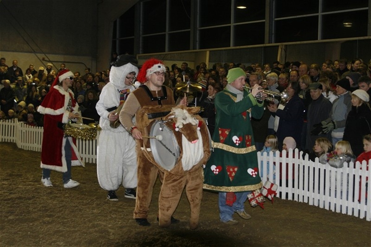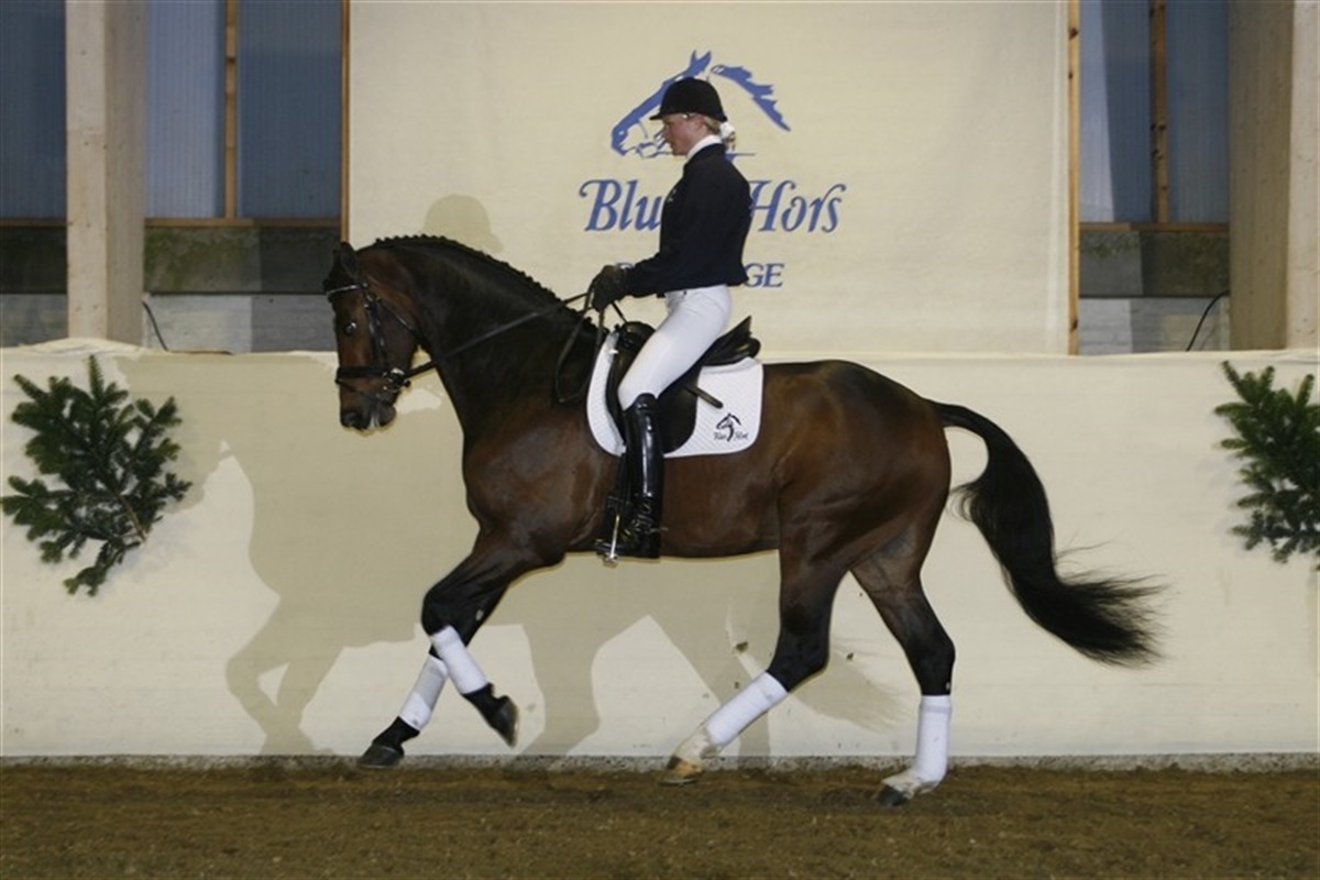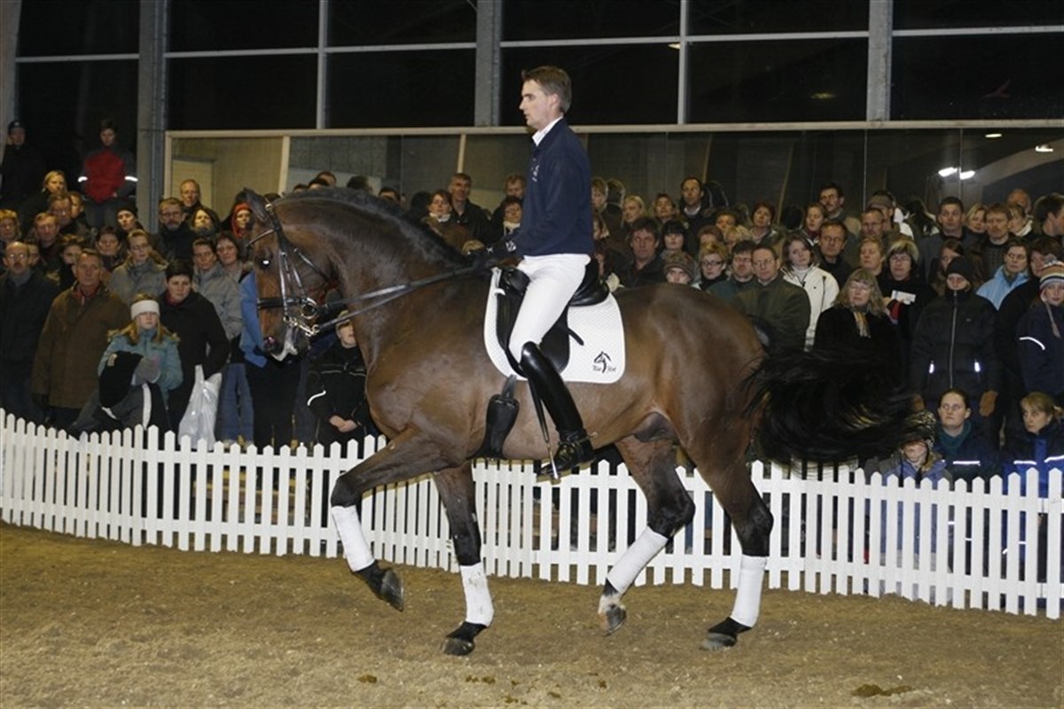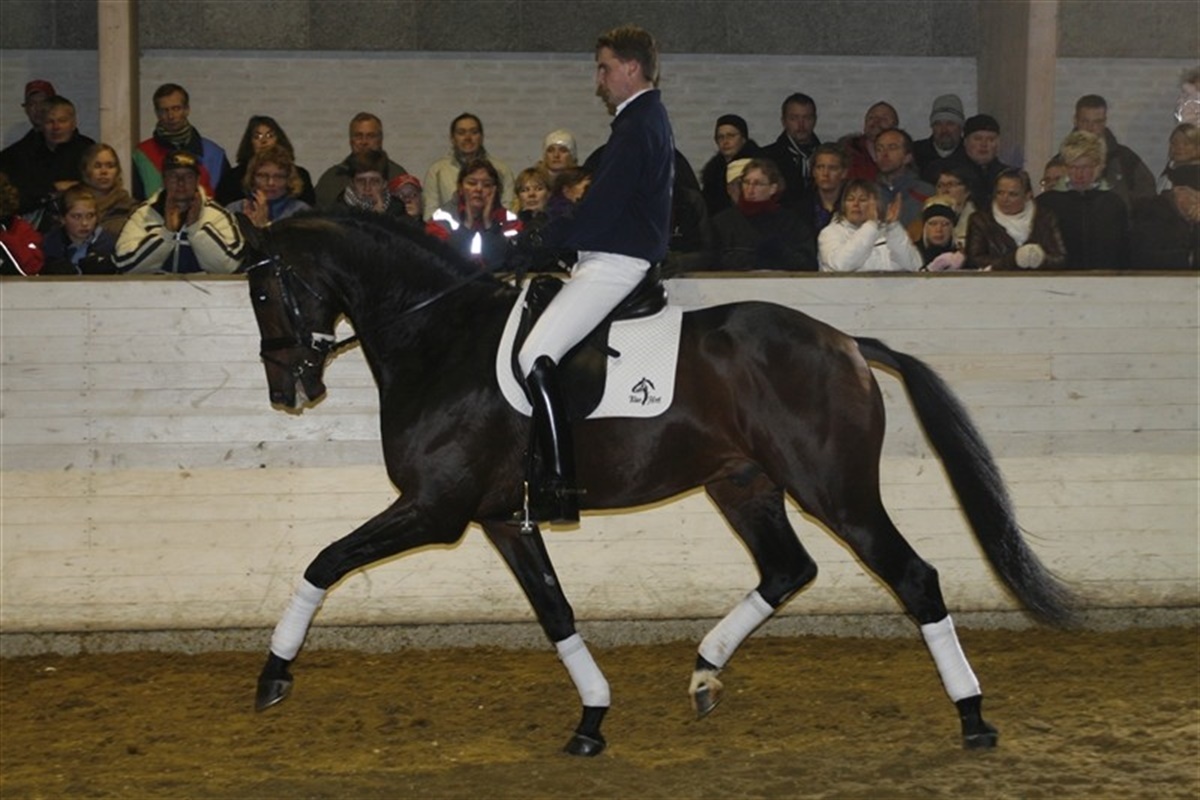 Der var fulde huse på Blue Hors den 18. december, hvor mere end 1000 hesteinteresserede trodsede vinterkulden, og hyggede sig i den store, granpyntede ridehal med gløgg, æbleskiver og pebernødder. Musikgruppen "Nissebanden" fik julestemningen i top, og publikum måtte igen og igen fjerne lufferne for at klappe begejstret, når en af Blue Hors eller Stutteri Asks hingste excellerede i spektakulære øvelser eller over store forhindringer. Det var især Blue Hors Leredo og Blue Hors Romanov, som begejstrede publikum i hallen. Andreas Helgstrand demonstrerede, hvor let de to hingste har ved at vise dressurens vanskeligste øvelser. Blue Hors Romanov, der fylder 8 år ved årsskiftet, har en helt fantastisk passage, og hans piaffe med overgange er på vej til at blive noget helt særligt. I aftes demonstrerede hingsten også, at etterchangementerne er ved at være helt på plads, så der er store ting i vente fra hans side i det kommende og især de kommende år. Sarah Kroman Rosenlund og berider Søren Møller Nielsen havde taget flere af Stutteri Asks unge hingste med, og de sprang stort og i god form for det begejstrede publikum. Søren Møller Nielsen red også Lambrusco Ask på nogle velvoksne oxere. Hingsten vandt i november den store Böckmann Masterspringning i Odense med Andreas Schou i sadlen, nu har hingsten fået sin faste plads i boksen på Stutteri Ask, og det er for fremtiden Søren Møller Nielsen, som skal ride hingsten i konkurrencer. Det var Esben Møller som bandt aftenen sammen med gode informationer om hingstene, deres forventninger til hingstene i sporten med meget mere. Hvor er det herligt at høre en hingsteholder, nøgternt fortælle, at ikke alle hingste passer lige godt til alle hopper. Fortælle hvilke hopper, det er stationens erfaring, at den enkelte hingst passer bedst til - og samtidig erkende, at ikke alt afkom efter selv stjernehingstene er godt, hvis hoppen og hingsten ikke passer sammen.