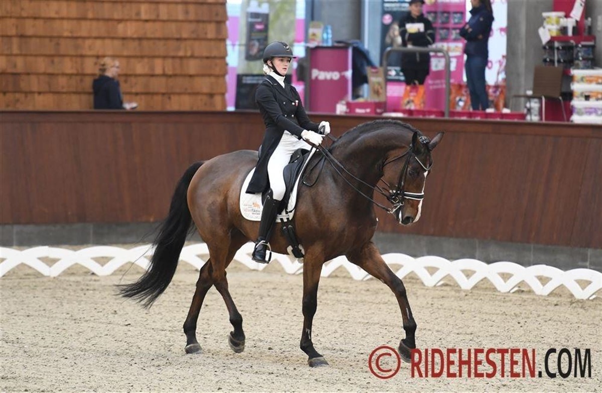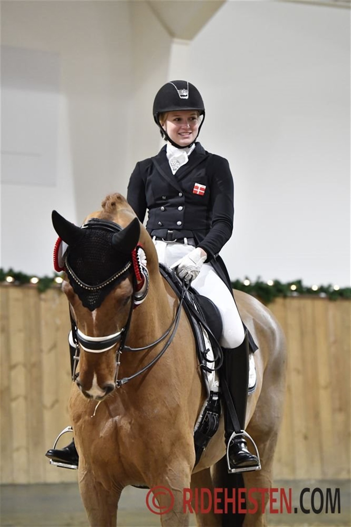 På andenpladsen blev det Annabelle Rehn med Aros a'Fenris e. De Niro/Temple Wind xx (opdr. Stald Fenris), som red til 70,811 %. Tredjepladsen blev vundet af Frederikke Gram Jacobsen med Ryvangs Zafina e. Blue Hors Zack/Come Back II med 70,473 %. Og netop denne ekvipage kan I snart lære meget bedre at kende, for de pryder nemlig forsiden af novembernummeret af magasinet Ridehesten, som er på vej rundt i landets postkasser. Her bringer vi et portræt af Ryvangs Zafina, i forbindelse med vores artikelserie "Fra føl til sportshest".