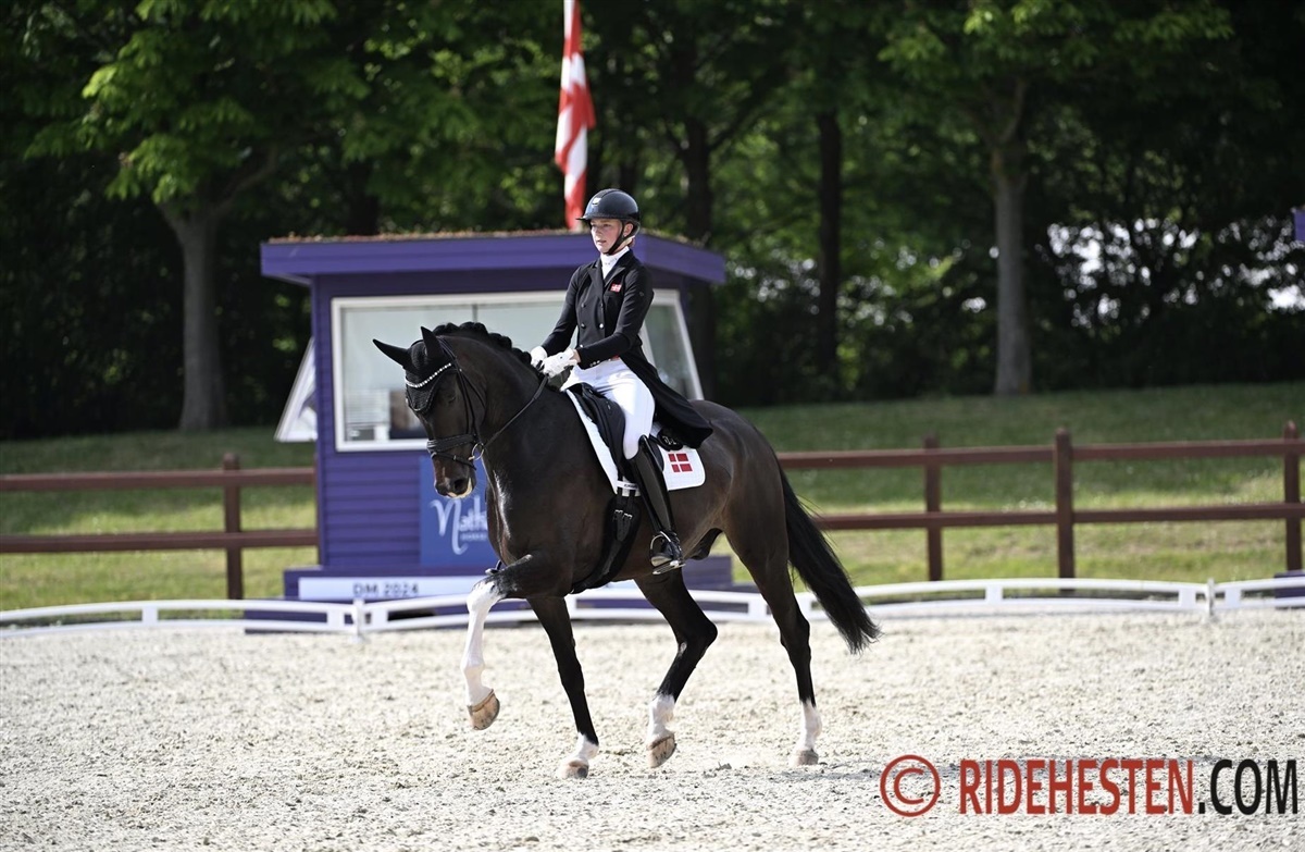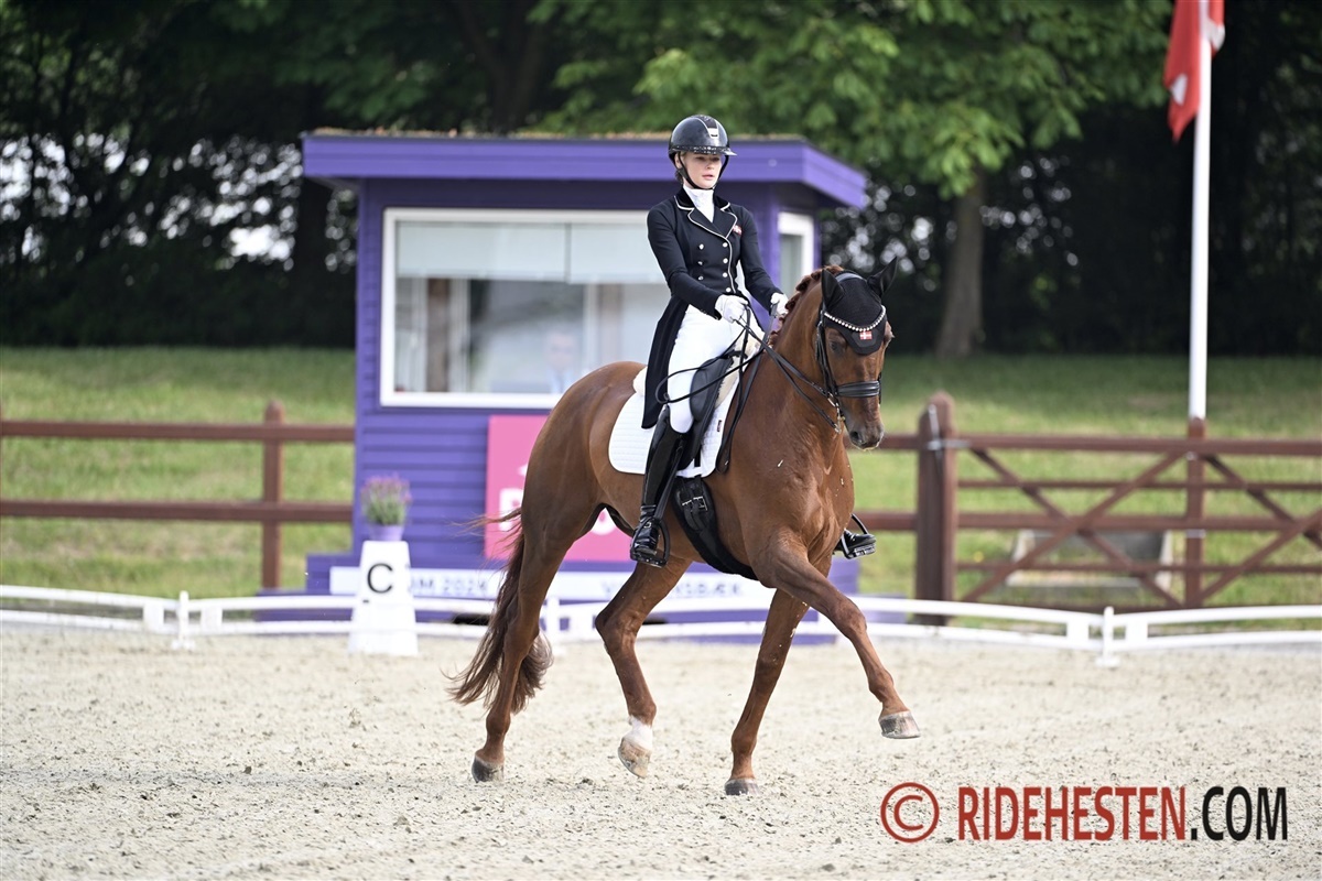 I går var Clara Cordes Arnkjær på Brianna e. Fuerstenball Old/ Farewell III på banen, hvor parret sikrede sig klassens hidtil bedste resultat, nemlig 72,758%. Ligeledes var Josephine Gert Nielsen og Bravio Bianco e. Belantis/ de Niro 6 i ilden for at kæmpe for de røde og hvide farver. De leverede et flot ridt og blev belønnet med 67,455%. Pigernes resultat var nok til en foreløbig bronzemedalje, men i et mesterskab kan alt ske, og i dag skulle de to sidste ekvipager fra det danske hold på banen, for at kæmpe det bedste de overhovedet kunne, for at sikre en dansk holdmedalje.