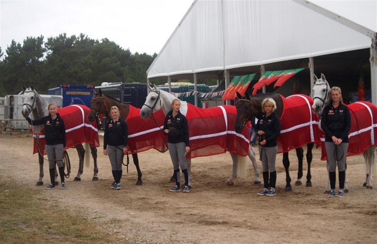 Holdet fortæller at vejret i Portugal er forholdsvis køligt lige nu med ca. 22 grader, men det forventes at det bliver meget varmere senere på ugen. Søndag gik alle 5 heste igennem dyrlægecheck uden problemer og det danske hold gjorde en flot figur i deres ens beklædning. EM starter for alvor på tirsdag, men tidligt mandag morgen har de danske ekvipager 90 sekunders opvarmning hver til lidt springning på den meget store fibersand arena. EM i Portugal løber fra d. 8. – 10. juli og det danske juniorhold udgøres af: Camilla Ernst, Rikke Belinda Barker, Shannon Mejnert Ketterle, Julie Meiland og Christiane Tetzlaff. Se EM's hjemmeside via linket til højre.