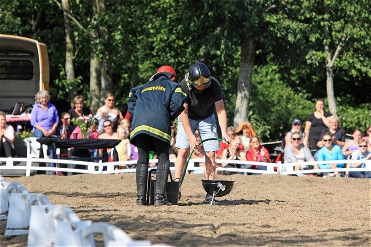 Udklædningsdommer Arne Kvejborg måtte op og give den som brandmand og slukke en brand.