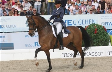 Trakehnerhingsten Kaiser Wilhelm e. Lehndorff's/Mahagoni var i Danmark kendt som avlshingst på Stutteri York og som Grand Prixhest under Anke teer Beek. I slutningen af 2009 blev Kaiser Wilhelm solgt til hollandske Vera Verwelius, hvis datter Nathalie Verwelius træner hos Coby van Baalen. Cobys niece Marrigje van Baalen vandt i går lilletursfinalen i en Intermediaire II ved CDI4* i Dortmund med 14-årige Kaiser Wilhelm. Ekvipagen opnåede 66,21% og slog således de tyske topryttere Kirsten Sieber og Jessica Werndl.