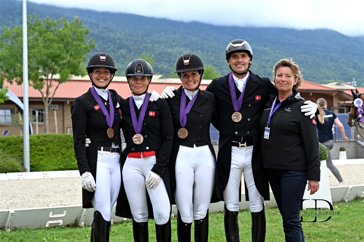 Denne uge har budt på dressur af højeste niveau til europamesterskabet for seniorer i Crozet i det østligste Frankrig på det imponerende Jiva Hill Stables med Mont Blanc i baggrunden. Holdkonkurrencen blev afviklet onsdag og torsdag, og det endelige resultat lød på guld til Tyskland, sølv til Storbritannien og ikke mindst en bronzemedalje til det danske hold.