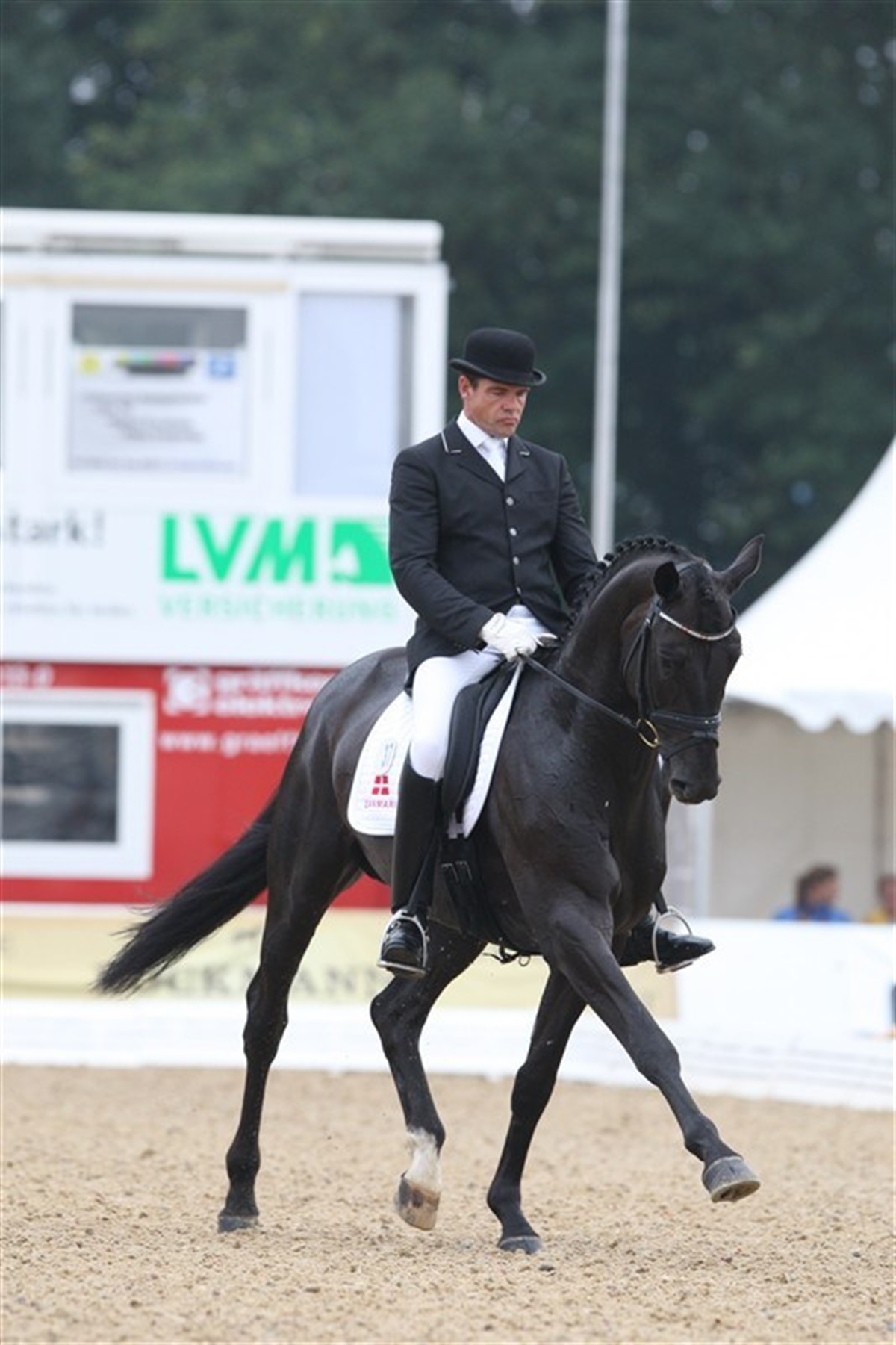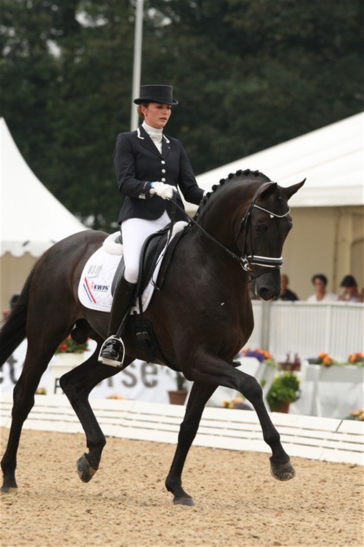 Andreas Helgstrand havde sit hyr med guldmedaljehoppen Tørveslettens Stamina, der slet ikke er bygget til at stå stille, ikke engang i en præmieoverrækkelse. Den skimlede hoppe dansede rundt og gav prøver på øvelser, der ellers hører til skolen over jorden. Andreas gjorde hvad han kunne for at få ro på den elektriske hoppe, med et skævt smil og benen godt ved hoppen, der vred sig under ham. Helgstrand og Stamina blev hyllet til sidst som gruppevinder med karaktererne: 9,4 - 7,5 - 8,5 - 8,8 - 8,8 ialt 8,64, i den samlede stilling rakte det til en femtplads, da der desværre gik lidt inflation i karaktererne til sidst i klassen. Vinder blev sidste år vinder Asterix e. Obelisk redet af Emmelie Scholtens for Holland med 9,16 (9,2 - 9,5 - 9,2 - 8,7 - 9,2) foran sin landsmand Laurens van Lieren på Presidents Avanti en, set udefra, ganske almindelig United-søn, der opnåede (8,7 - 9,0 - 8,7 - 8,8 - 8,8 ialt 8,8) van Lieren red i sidste gruppe, og blev gruppevinder, også klassens samlede nr. tre Dorothee Schneider og St. Emilion e. Sandro Hit red i denne sidste gruppe, og hun opnåede ialt 8,78 bl.a. 8,0 for en skridt, der set udefra tangerede pas. Som man kan læse i en tidligere nyhed i dag, så lykkedes det ikke hverken for Lotte Straarup eller John Hvalsø Saul at blande sig i kampen om finaleadgang. Især elegante Hønnerups Ecstasy e. Blue Hors Romanov led under at være første startende i klassen. Lotte fik vist et godt program, hvor eneste mislyd var hoppens manglende villighed til at gå tilbage. Det er naturligvis en reaktion, som skal koste i ridelighedskarakterern, de opnåede (7,7 - 7,1 - 7,4 - 7,0 - 7,5 ialt 7,34) Michala Damm-Frydenberg viste et sikkert program, på Heslegaard's Rismon e. Heslegaards Rubin, der gik smidigt og afspændt gennem programmet, men til sammenligning med de hollandske ekvipager som dommerne gav topkarakterer, manglede tempo og noget mere her-kommer-jeg i sit udtryk på banen. De fik: (7,8 - 7,6 - 8,0 - 8,0 - 8,0 ialt 7,88) (Karaktererne er: trav, skridt, galop, ridelighed, samlet indtryk og ialt)