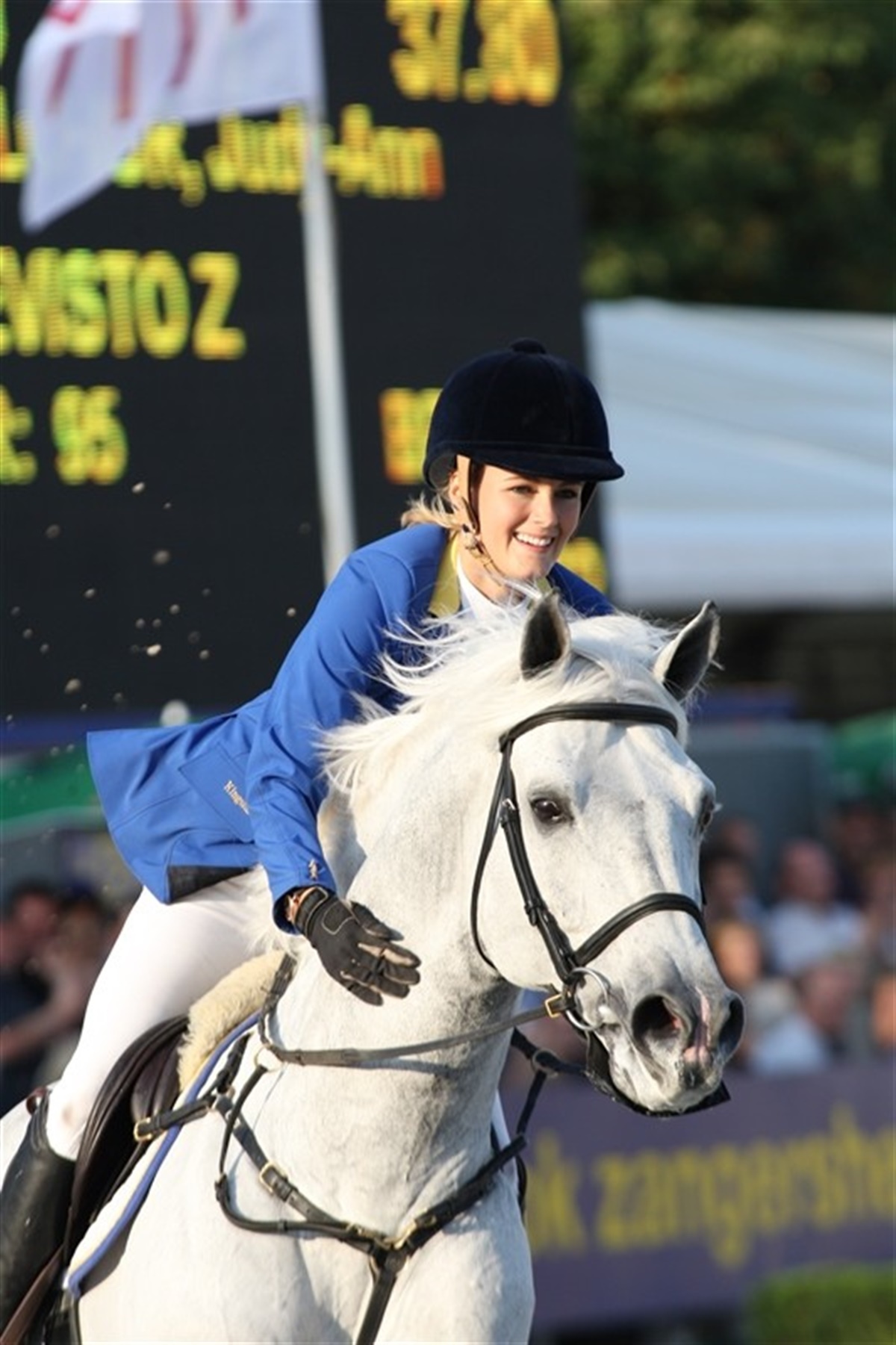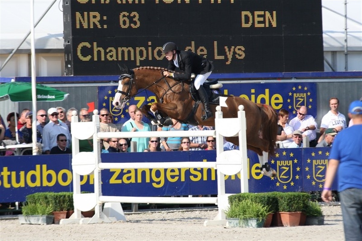 Karina Rie Truelsen red en formidabel flot hovedspringning på avlshingsten Lord If de Chalousse e. If de Merze. Hingsten sprang overbevisende og let på selv de vanskeligste linjer - især en linje med en stor oxer efterfulgt i en fast afstand af en stor trekombination kostede mange fejl. Karina Rie Truelsen måtte derfor starte først i omspringningen, så hun havde en mulighed; at give max gas. Og det gjorde hun. Hun red en hurtig og fejlfri runde, det satte hendes konkurrenter under pres, og det var ikke alle ryttere, der kunne ride banen fejlfrit i så højt tempo. Det blev en japansk rytter, Eiken Sato og BV Projects Cartoon Z, der først slog Karinas tid og dernæst lagde den olympiske sølvvinder Albert Voorns søn Vincent sig i spidsen knap et sekund hurtigere end japanerne. Sidste ekvipage på banen var sidste års vinderpar Judy-Ann Melchior og den danskkårede hingst Levisto Z e. Leandro, hun red indenom hvor det var muligt, satsede i alle vendinger og det gav resultat, for da parret susede fejlfrit i mål standsende tiden på 37,80 sekund mod Vincent Voorns 38,42 - Karina og Lord if de Chalousse sluttede på en flot fjerdeplads i tiden 42,41 sekund. - Det er aldrig let at ride først, og jeg var ikke sikker på, at man kunne vende indenom til den store tribblebare, men det kunne man, sagde Karina med et stort smil da topplaceringen var en kendsgerning. Ved at klikke på filen til højre kan man se et lille video klip af Karinas omspringning på Lord if de Chalousse.