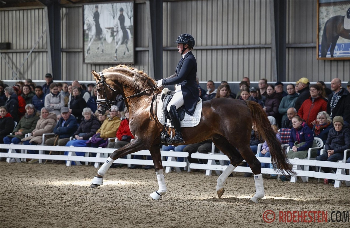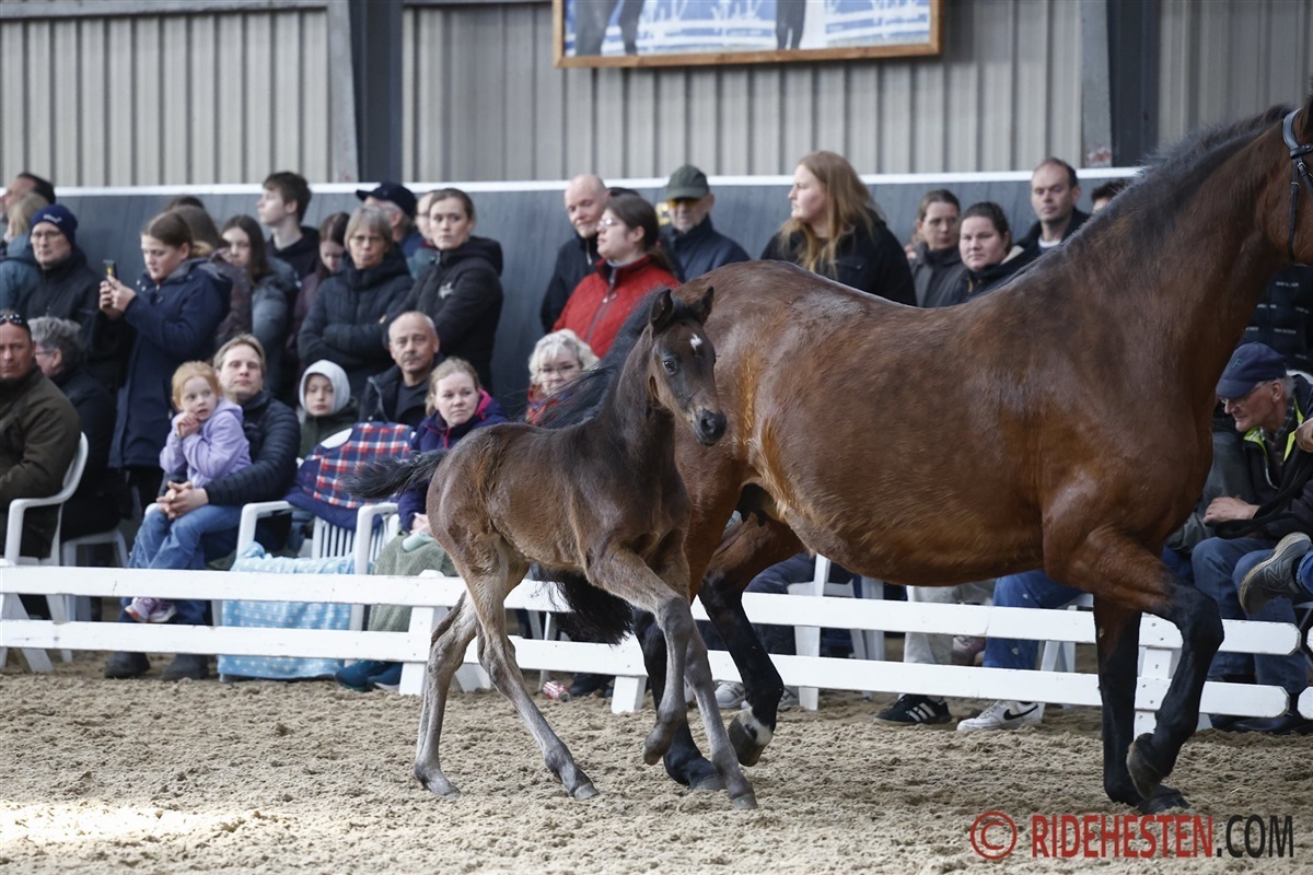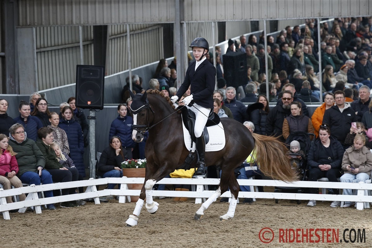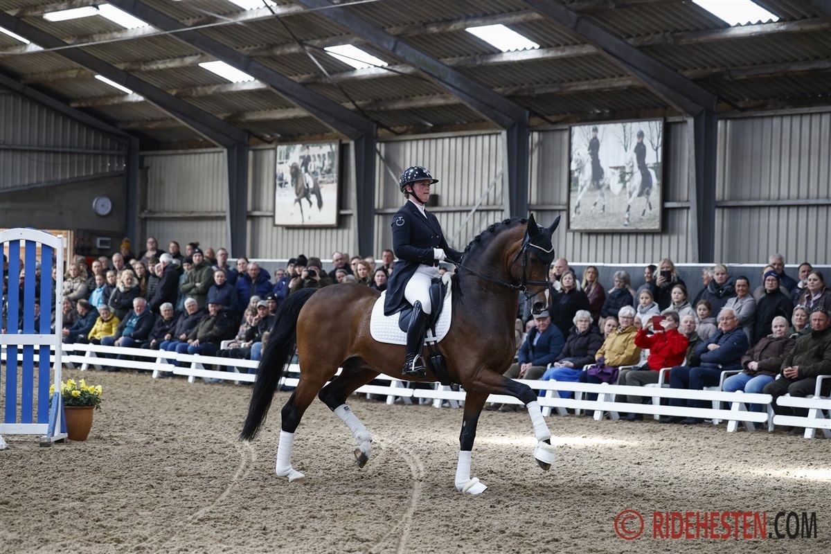 Der blev også vist flere fine springhingste frem, som markerede sig positivt i hallen. Kamilla Ladefoged Rasmussen havde taget turen til Mors med hingsten Cartoon Hero RV e. Chacoon Blue/ Le Champ Ask (opdr. Søren Riis Vester, ejer Frandsbjerg Horses A/S). Han viste flot figur, og kommentator Kristian Skovrider gav udtryk om et håb om en tur til Zangersheide, når der skal rides UVM for de unge springheste senere på året.
