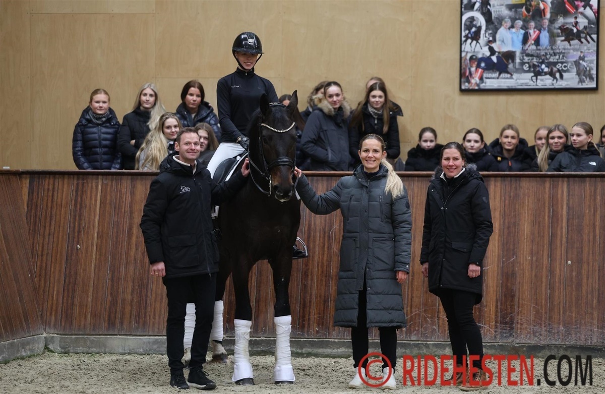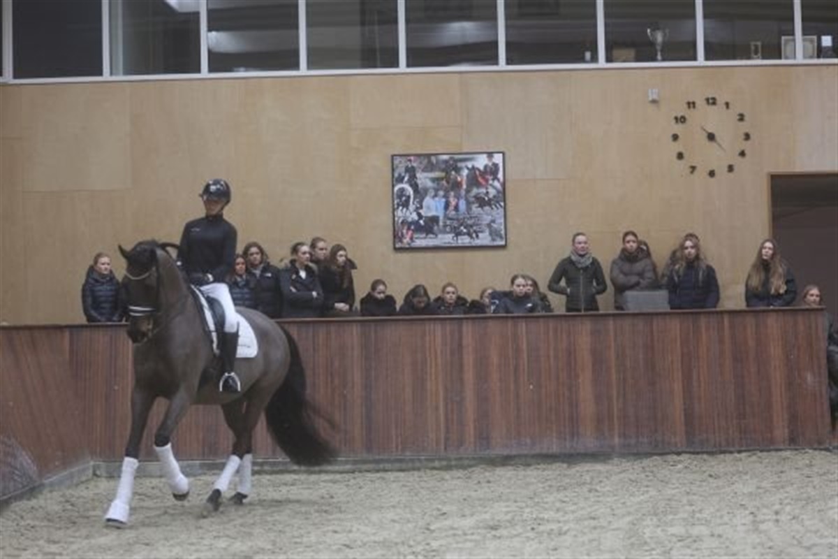 Formålet er at berige rytterne med ny, eller opfriske kendt viden, når de er samlet på ECCO Centeret. Under formiddagens mini clinic hos Anna Toosbuy Rasch blev der talt åbent og ærligt om den daglige træning af hestene. Deltagerne fik set Anna instruere Frederikke Gram Jacobsen træne to heste: Foldbergs Dantino og For Emotion – to dejlige heste, som er særdeles godt på vej i deres træning, men også, hver især har nogle udfordringer, som udfordrer deres rytter og træner. Anna blev suppleret af landstræner for ponyrytterne Lisbet Seierskilde og landstræner for junior- og ungryttere Kenneth Damgaard. Og mens træningen foregik, blev deltagerne opfordret til at stille spørgsmål. Der var flere, som benyttede chancen for at få tips af OL-rytter Anna Toosbuy Rasch undervejs i træningen – gode råd til at løse udfordringer med egen hest.