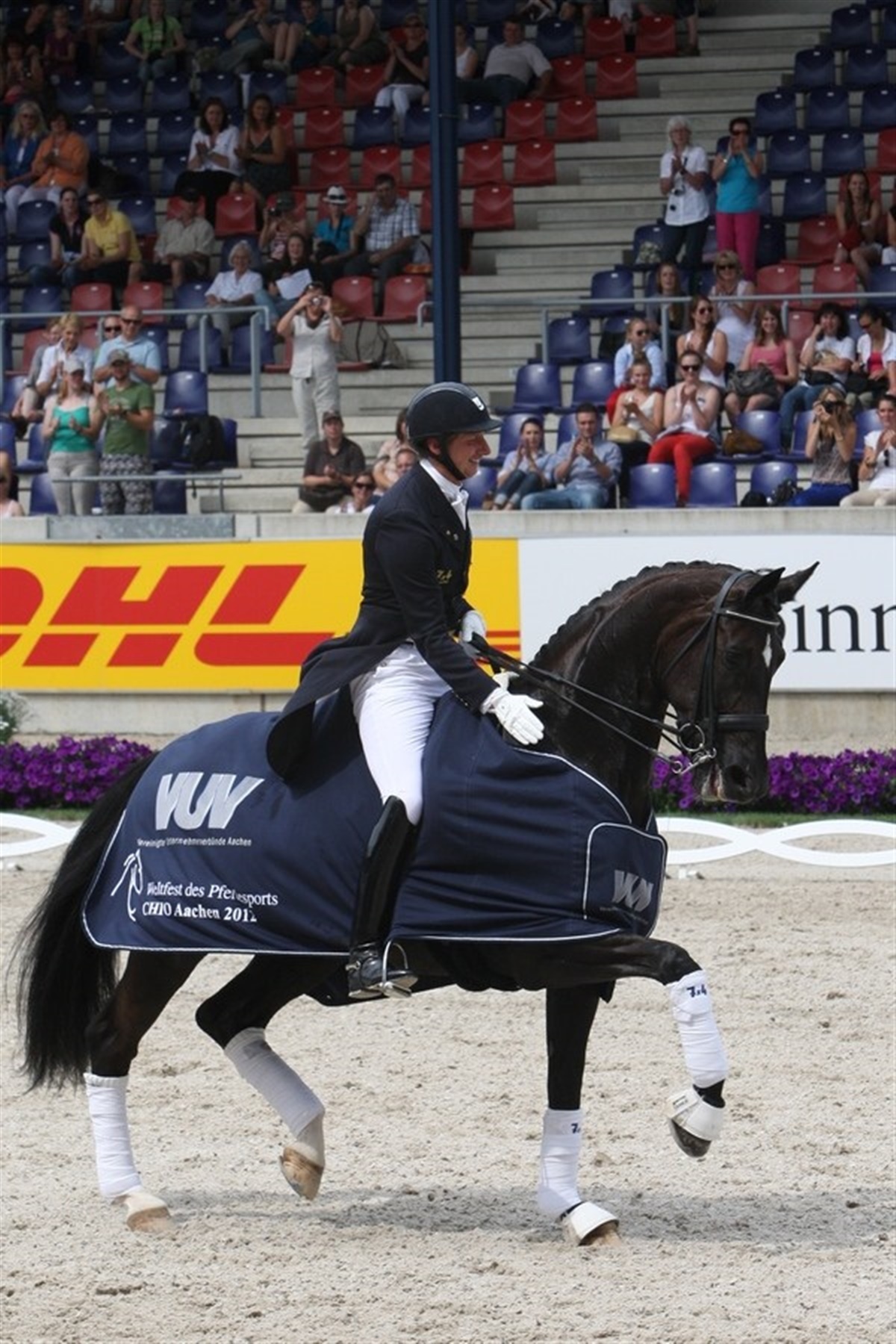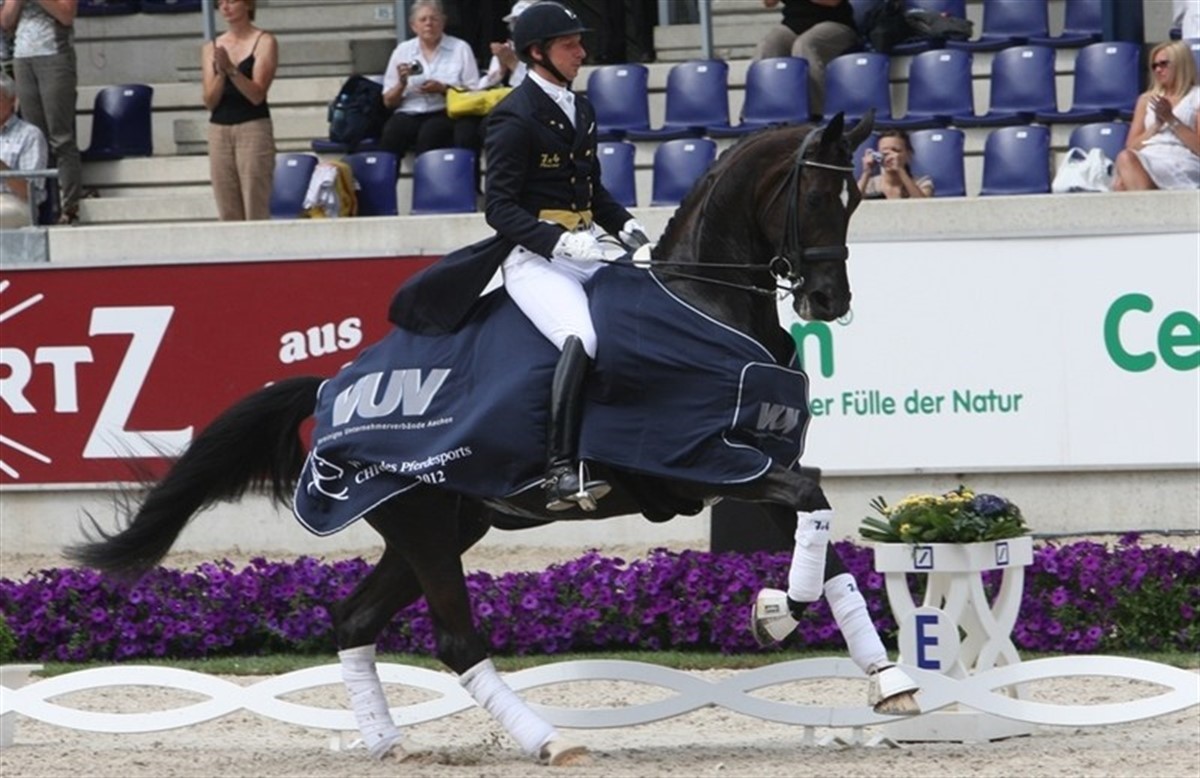 Danske UNO Donna Unique e. Blue Hors Don Schufro / Falkland (opdr. Stutteri UNO) er ikke blot tidligere Årets Hoppe i Dansk Varmblod men har blandt mange championatstitler også den fornemmeste som verdensmester for 6-årige dressurheste. Hoppen, der i januar d.å. blev solgt til Tyskland, rides af svenske Patrik Kittel og ekvipagens foreløbige optræden i international lilletur har været alt andet end beskeden. Således vandt de også den første dressurklasse ved CHIO Aachen 2012, Prix St. Georges, med 73,553%. Bag sig havde de en ekvipage, der i vintersæsonen har domineret international lilletur i Europa, nemlig oldenburghoppen Della Cavalleria e. Diamond Hit / Rubinstein (her er farfar Blue Hors Don Schufro) redet af østrigske Victoria Max-Theurer.