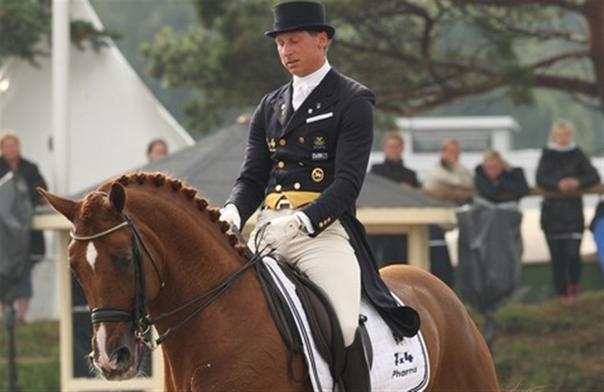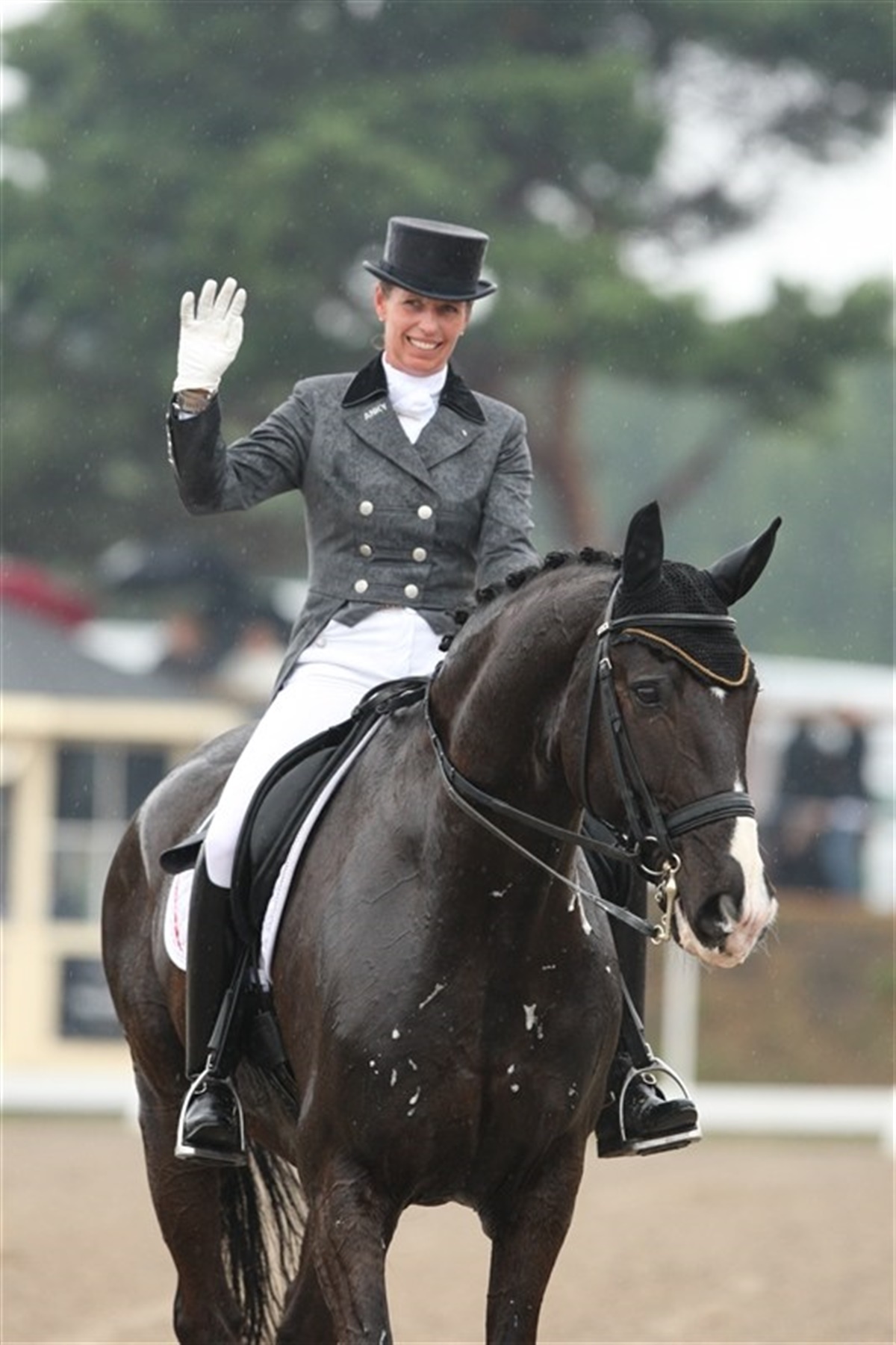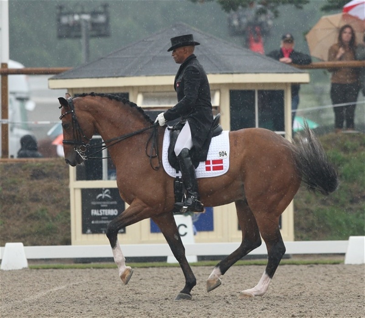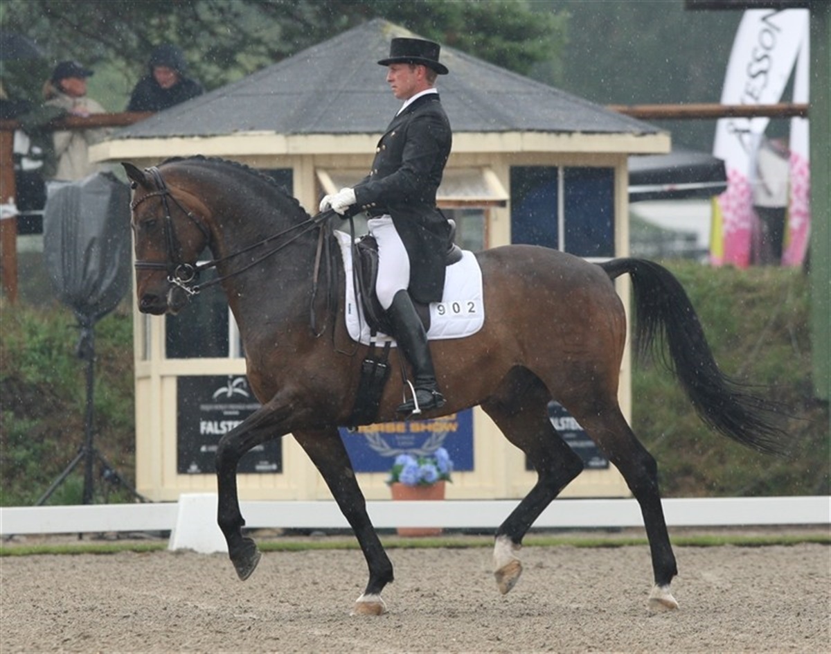 Det er ikke mange, de de senere år kan bryste sig af at have slået OL, VM, EM og World Cup vinderparret Anky van Grunsven og Salinero. I Falsterbo i dag kom de tilbage i konkurrence efter en længere pause fra international dressursport. Anky har besluttet at 17-årige Salinero, som fortsat er frisk og parat til at yde for Anky inde på banen, skal gå enkelte udvalgte stævner. Det var naturligvis ikke samme gennemsmidige elastiske Salinero som vi husker ham fra hans absolutte glansperiode, men det var en hest, som i høj grad gjorde jobbet inde på banen med energi og gålyst. Dommerne gav dem 71,298% og dermed var spændingen i høj grad bevaret i klassen. Tysklands Anja Plönske og Le Mont 'Or var den første til rigtig at udfordrer Ankys score, men med 70,596% måtte hun se sig distanceret af hollænderen. Sidste rytter på banen er elev af Ankys mand Sjef Janssen, svenske Patrik Kittel har med Watermill Scandic HBC efter den danske varmblodshingst Solos Carex opnået flotte resultater det seneste år, og i dag fungerede deres samarbejde perfekt inde på banen, dog kom der et par små fejl i begge serier, men deres piaffe passage arbejde var enestående i klassen og det i kombination med mange højdepunkter i travprogrammet gav dem sejren med 75,191% Danskere i feltet To danske ryttere havde fået adgang til Grand Prix-klassen; Bo Høstrup/Cajo og Jim Rasmussen/Broholm's Highlight. Begge danskere måtte ride mens regnen væltede ned over dressurstation. Og det kom ikke rigtigt til at "spille" for de to danskere inde på banen, der indløb for mange småfejl og det betød, at ingen af dem kom ind i placeringerne. Bo Høstrup sluttede på 10. pladsen med 66,362% og Jim Rasmussen fik 64,766% til 15. pladsen. Kittels dobbeltsejr I formiddagens Grand Prix blev det også til en sejr til Patrik Kittel og Toy Story e. den danskkårede elitehingst Come Back II. To danske ryttere Michæl Søgaard og Joachim Thomsen havde fået adgang til denne Grand Prix, men de nåede ikke ind i placeringerne. Søgaard og Pari Cash Foldager fik 64,319% mens Joachim Thomsen fik 64,043% Lusingando