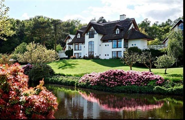 Fra boligerne er der udsigt over den smukt anlagte park med vandløb og et væld af store rododendron omgivet af skov, sø og hestefolde. I parken er opført et fint lille kunstneratelier med kobbertag. Ejendommen er velegnet til bolig for to familier.