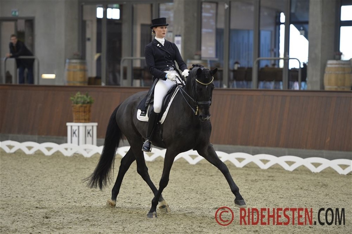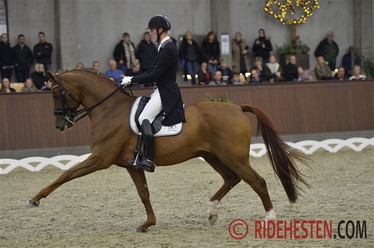 Daniel Bachmann Andersen og avlshingsten Blue Hors Veneziano e. Vivaldi imponerede i kraft af hingstens udtryk og gode grundgangarter, hvor dens galop "op ad bakke" med stor rummelighed er en fornøjelse at følge. De så ud til at kunne presse kvinderne, men et kiks i den ene pirouette, der tæller dobbelt, koster dyrt, og de sluttede på fjerdepladsen med 72,018%.
