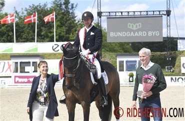 Carina Nevermann Torup og den herlige balletdanser, guldmedaljehoppen Grevens Sa'Va e. Blue Hors Soprano (opdr. Svend Skov Poulsen og Dorit Greve) scorede gode points gennem hele travprogrammet, hvor hoppen arbejder dejligt "op ad bakke" og smidigt under Carina. Desværre indløb der et par små skønhedsfejl i galopprogrammet, men de kom ind på en sikker tredjeplads med 72,895%.