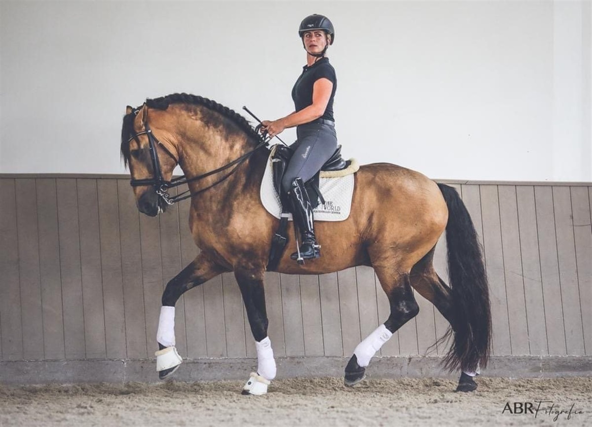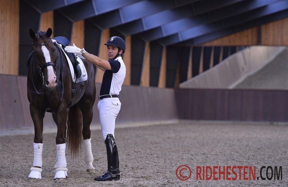 Severo underviser Nadja Maria på sin lusitanohingst med åben mikrofon.