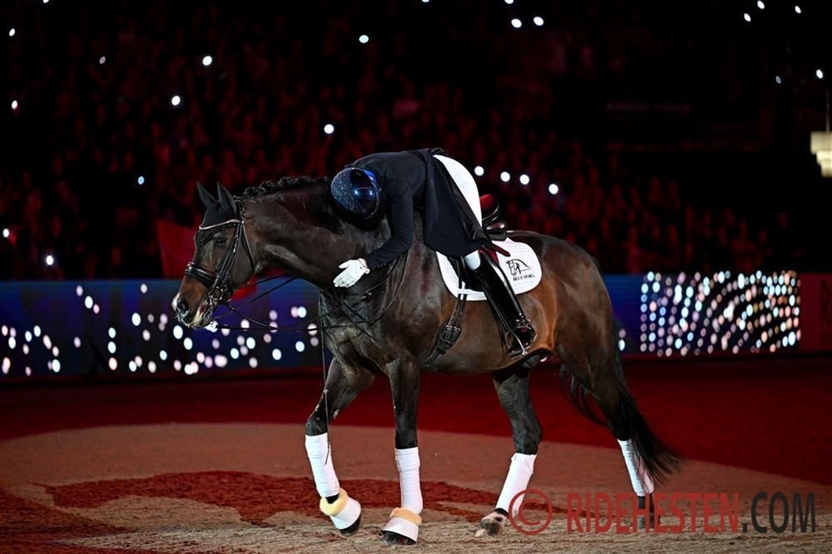 Nanna Skodborg Merrald red 20-årige Blue Hors Zack ind i Jyske Bank Boxen til stående applaus og jubel. Zack strålede og viste dressurens sværeste øvelser med sikkerhed og lethed. Det var tydeligt han nød at performe sammen med Nanna i en kegle af lys og med fuldt fokus. Han har betydet alverden for dansk dressurhesteavl, og har givet os fantastiske avlshopper og –hingste et stort antal dressurheste på aller højeste niveau. Og så var han selv med til at vinde VM holdguld i Herning i 2022.