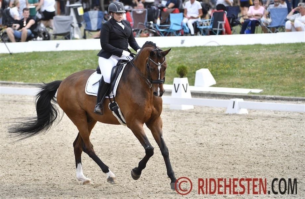 Andenpladsen gik til Michéle Kaisler (grad 5), som opnåede 69.375 % på den 8-årige hingst Burberry e. Blue Hors Don Romantic/Blue Hors Hertug (opdr. Gitte og Mogens Hansen), tæt efterfulgt af Luna Riis Søborg (grad 5) på tredjepladsen med 69.063 % på Pæregaards Romario e. Blue Hors Romanov/Don Juan (opdr. Lena Christensen).